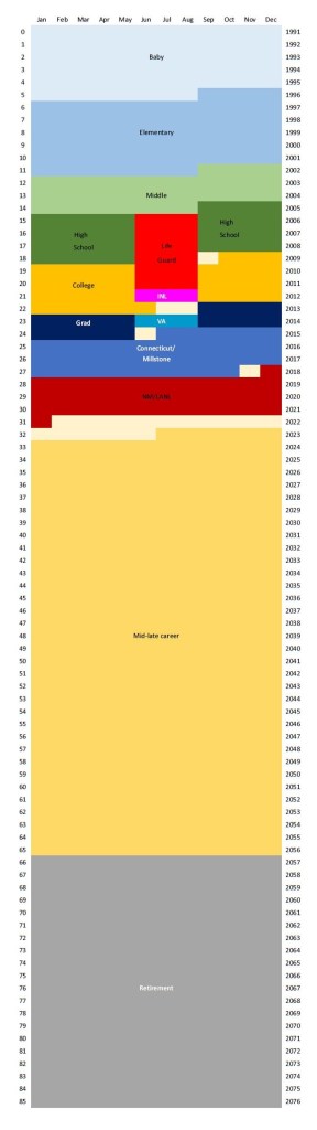 This is my life, past, present, and future. The gold color represents time I was/will be free to do what I want. Taking 2022 off looks pretty insignificant in the grand scheme of things, especially considering I will probably be working for another 30-ish years. So yeah, YOLO!