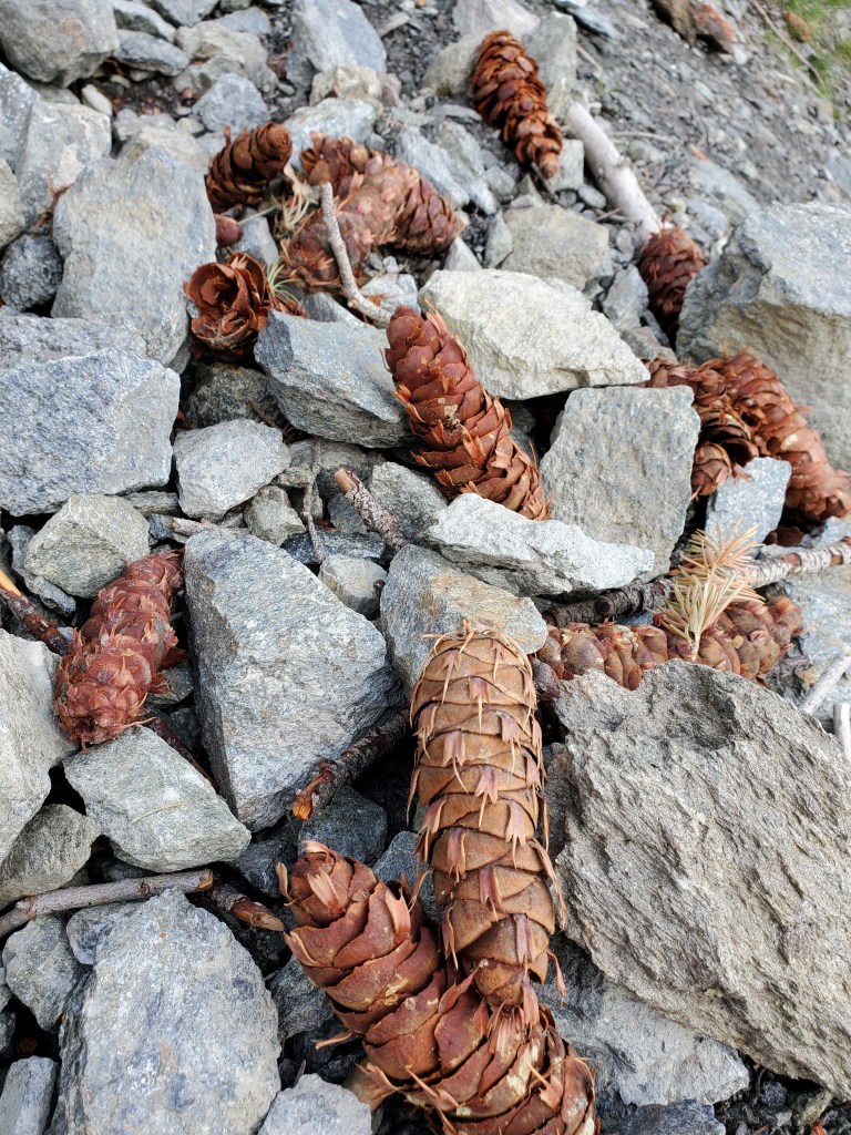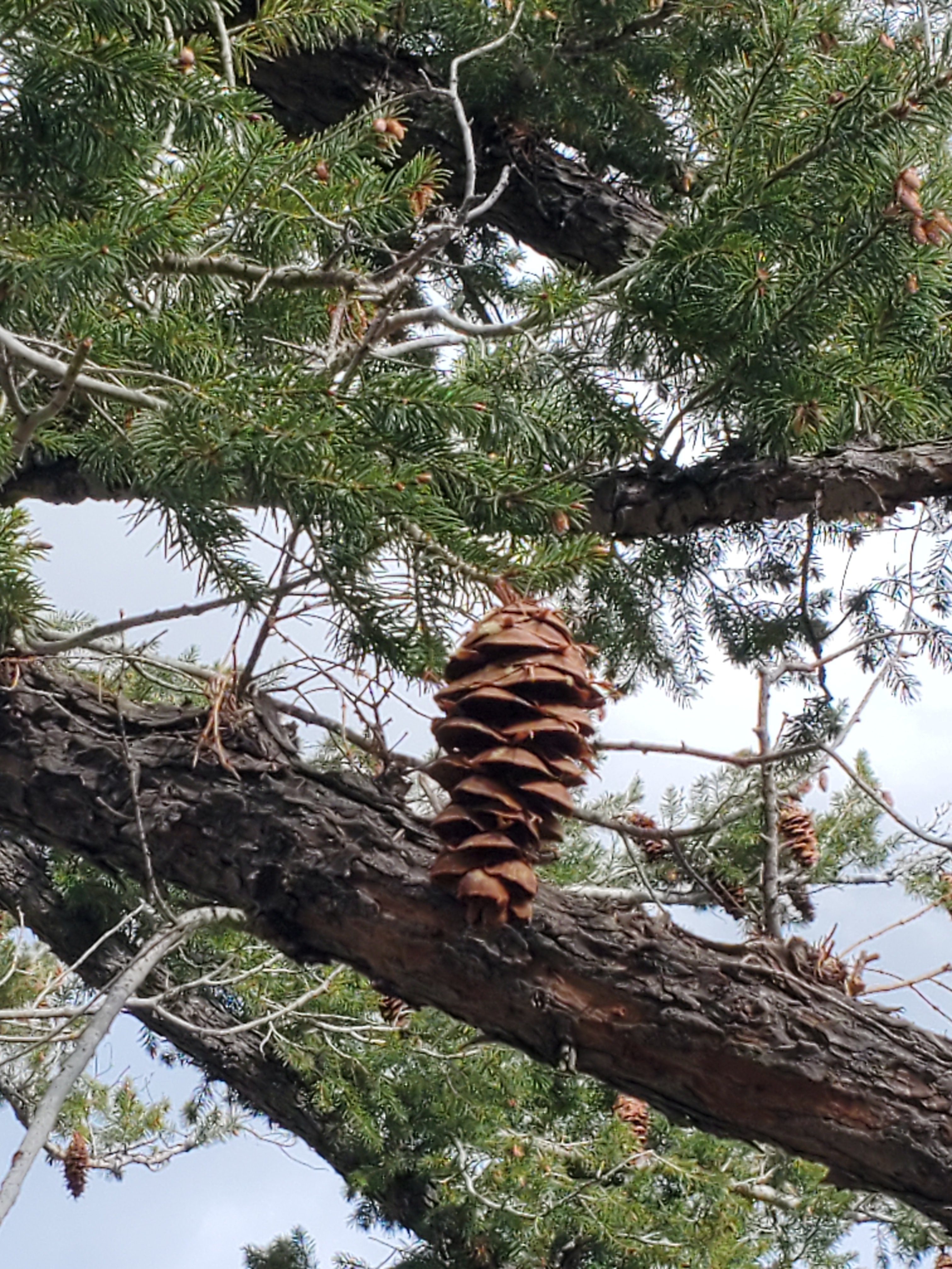 The chaparral shrubland at last gave way to the first small groves of conifers. From a distance I didn’t recognize these trees. Upon closer inspection I said, “Is that Doug-fir?” But upon much closer inspection, I realized it wasn’t just Douglas-fir, but Big Cone Douglas-fir (Pseudotsuga macrocarpa). Just a few days earlier I had mentioned this species to Maggie. I knew it was in Southern California, but not exactly sure where to find it. The Big Cone species produces fruits 4-6 inches long, roughly twice the size of the species found in the Rockies and Cascades. At a glance, the cones looked like big dog turds, especially after the recent rains. This was a fun, unexpected find for me.