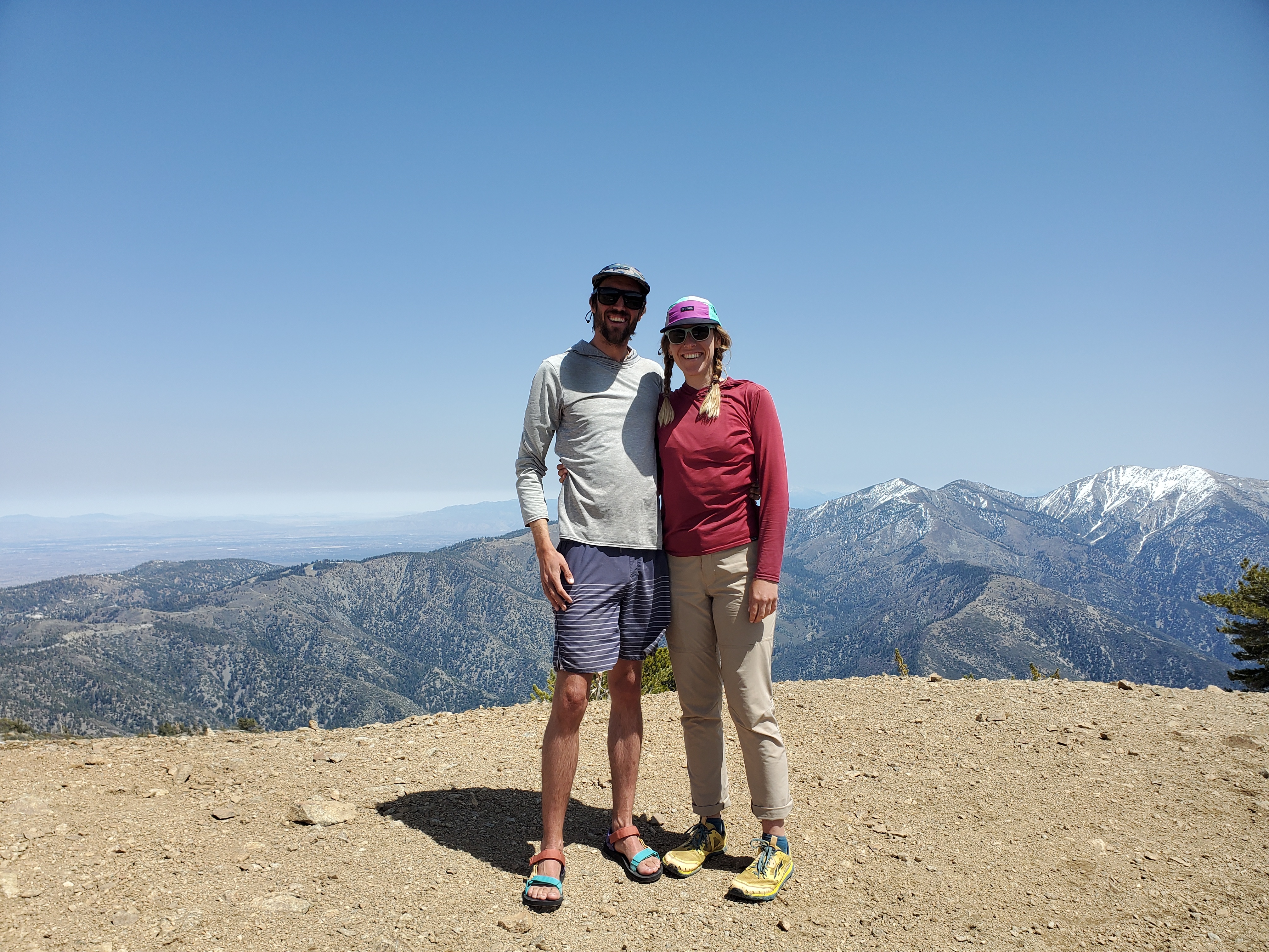 We slowly worked our way up the last few spicy sections, and the mountain finally relented on the slope. We made it to the summit just in time for lunch. The wind had died down throughout the day, and we found a place to sit and soak up some sun. Thru hikers trickled in behind us, and we all sat around for lunch time chit chat. The view was spectacular. Despite some haze and smog over L.A., we could see the Pacific Ocean, Catalina Island, the skyscrapers of downtown, and of course all the mountains we had hiked in the weeks before, all the way to San Jacinto 60 miles away!
