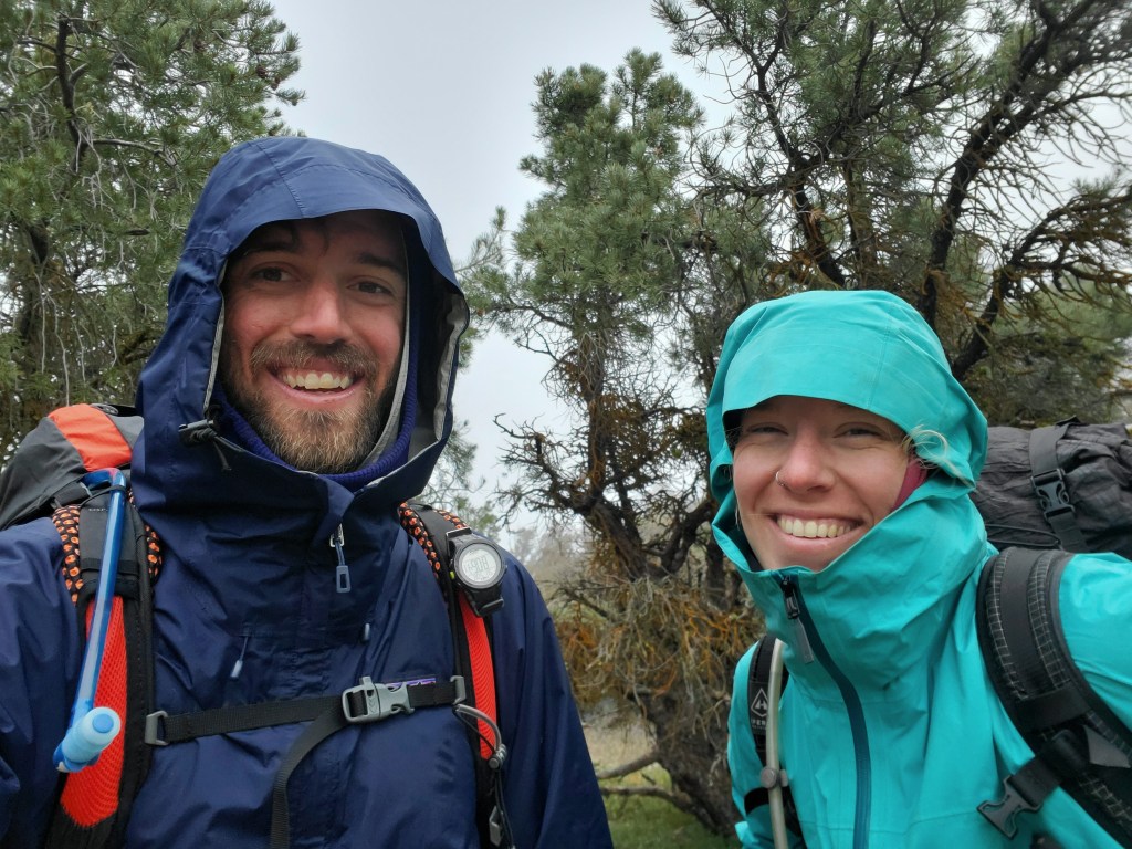 We woke up in a cloud. It wasn’t raining, per se, but the wind was flinging condensation off the trees on to our sleeping bags. We were still mostly dry though. We hiked into the fog.