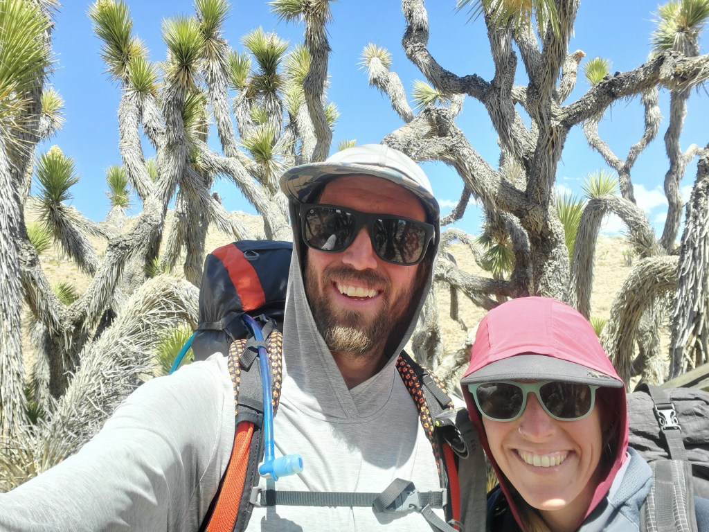 I woke up on the ground. Ok well obviously I sleep on the ground, but my sleeping pad deflated in the night. I was rather disappointed, but I did manage to get some more sleep. In the morning, Maggie spottied a one inch long cut on the bottom of the pad. A bit unusual, but we were able to patch it. We hiked through rolling desert hills. Sage brush, ephedra, and Joshua trees dominated the land.
