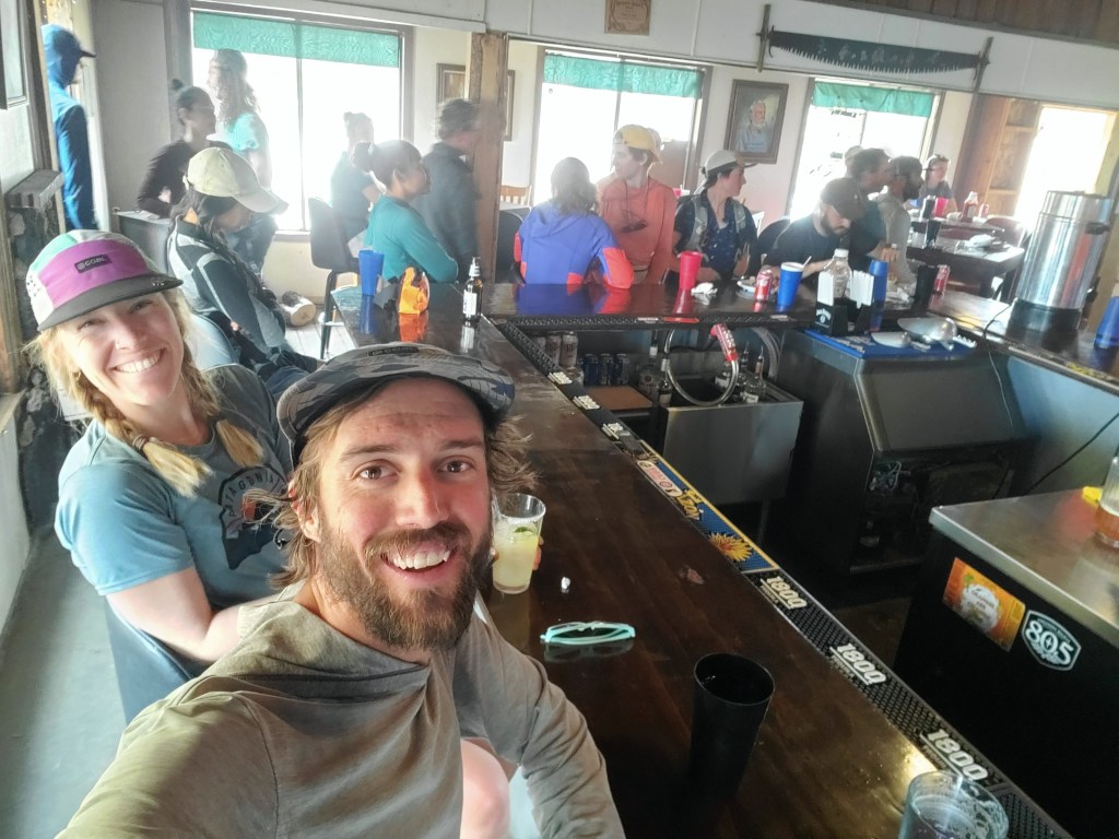 We set up our tent at the free dirt patch campground behind Grumpy’s where we found our Austrian friends, Lime and Stardust. We then checked out the outfitter next door, an entire gear store crammed into a shipping container. We got a replacement filter (thank goodness), new shorts for Maggie, and some snacks. Back at Grumpy’s, we picked up our bear boxes, ice axes, and microspikes. Not stoked on speding tons of money there, we grabbed beer to go and made dinner at camp. Maggie and I sat and talked with the Austrians into the evening.