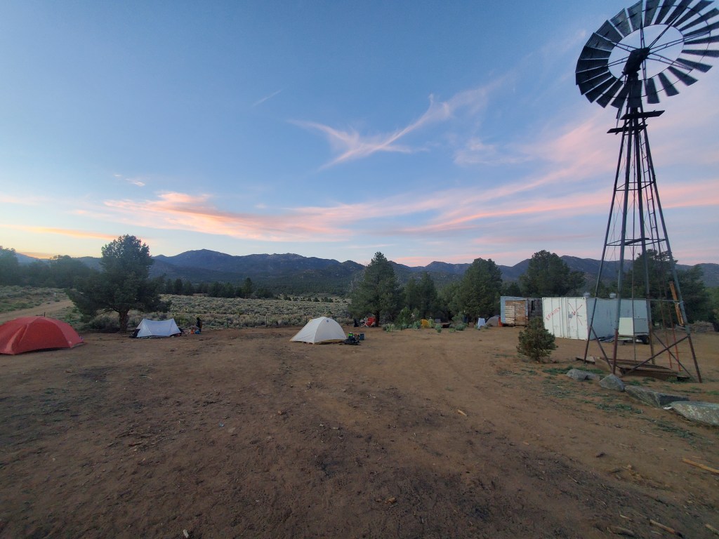 I crawled out of the tent, the sun already high and blazing. We were hankering for breakfast at Grumpy’s. “Good morning!” Lime-A-Rita said, “Would you like some hops for breakfast?” They had some leftover Budweisers that needed to be “disposed of” before setting off the next day. Can’t say no to free beer when you’re unemployed and homeless. We sat and talked in the shade of a lone pinyon. With the beer properly polished off, we stumbled back to Grumpy’s. Maggie got a burrito, I got the Hiker breakfast – eggs, hash browns, sausage, and a 14 inch pancake. Supposedly they offer all you can eat pancakes, but I think one pancake is all you can eat, physically. Bloated from buds and breakfast, we sat despondently on the patio, scrolling through our phones, searching for more dopamine on the internet. Feeling like we ought to do something, we finally took a shower. It’s worth noting that other than food, drinks, and WiFi, everything else is free at Grumpy’s. The free shower was outdoors in a corrugated aluminum stall. There was a drain, but it seemed like half the water trickled into the desert beyond. Hmm.. It was at least hot with a tankless propane water heater giving us sweet relief from a weeks worth of dirt and grease. Afterwards, we did “laundry,” sloshing a few of our dirty clothes in ziploc bags with a dash of rose scented Dr. Bronner’s we picked up in a hiker box. Back at the bar, I worked on the blog. We had a couple beers with the Austrians. One of the guys from the Wolf Pack, Johnny Sunshine, rolled in. We were surprised to see him since they took several zero days in Los Angeles. Apparently he hiked 29 miles that day to get to Kennedy Meadows, leaving the rest of the pack in the dust. We ambled back to the campground for an economically sound dinner at the tent. We got to bed early, our ride back to the PCT would be at 7am the next day.