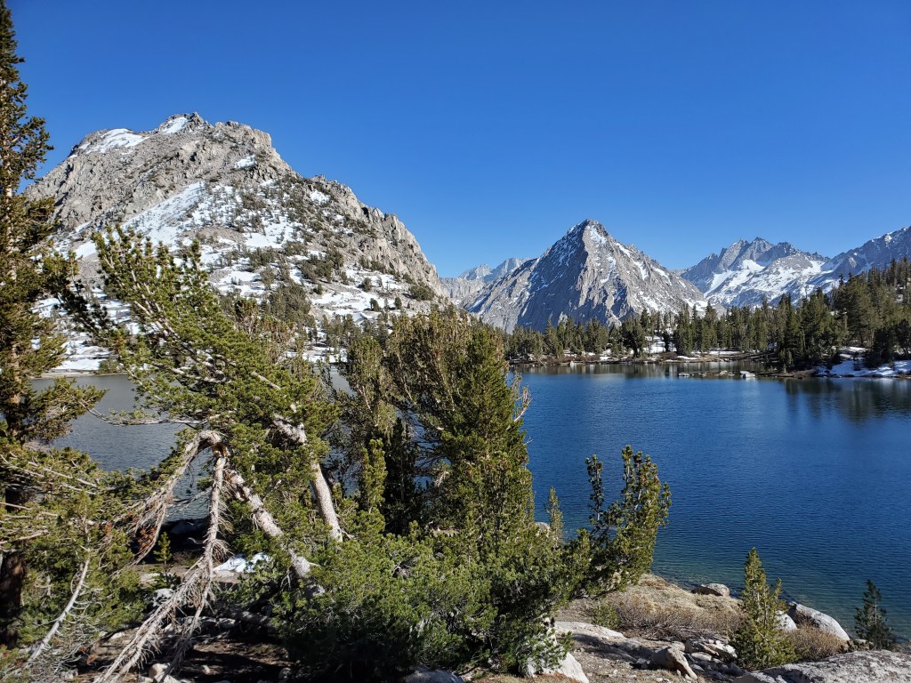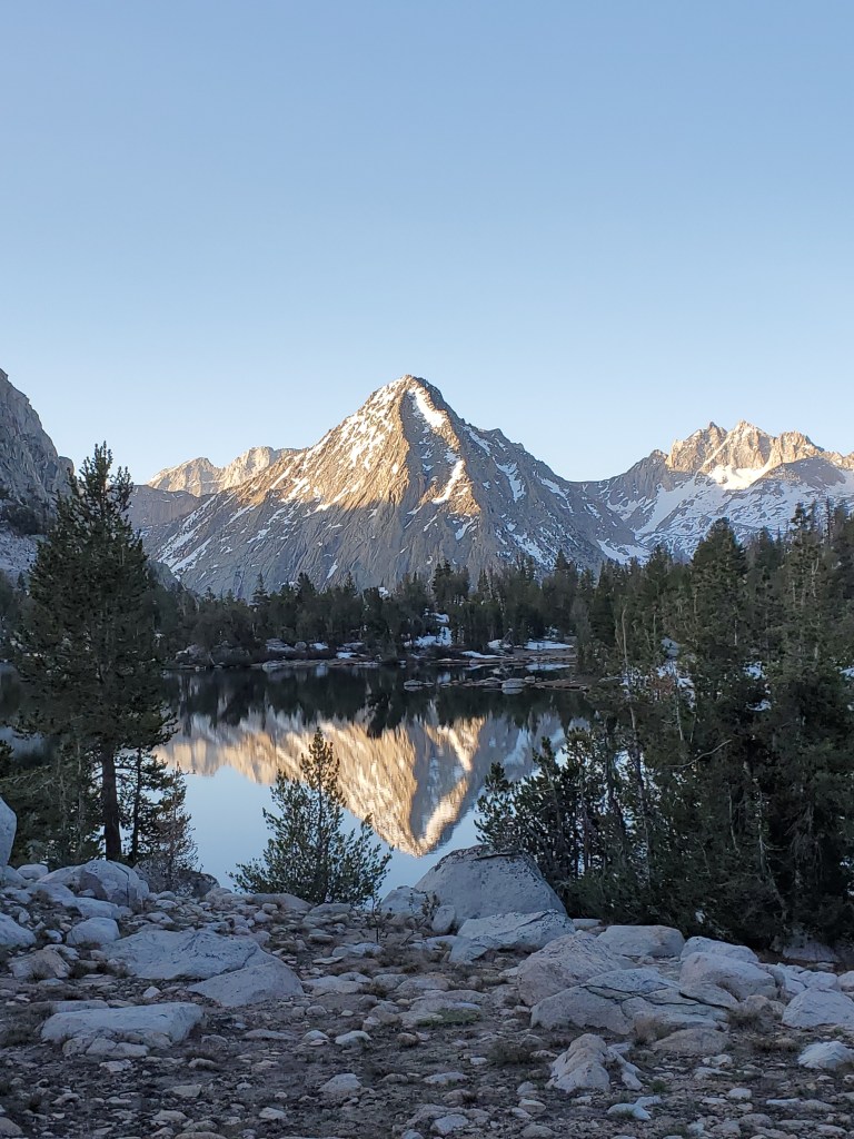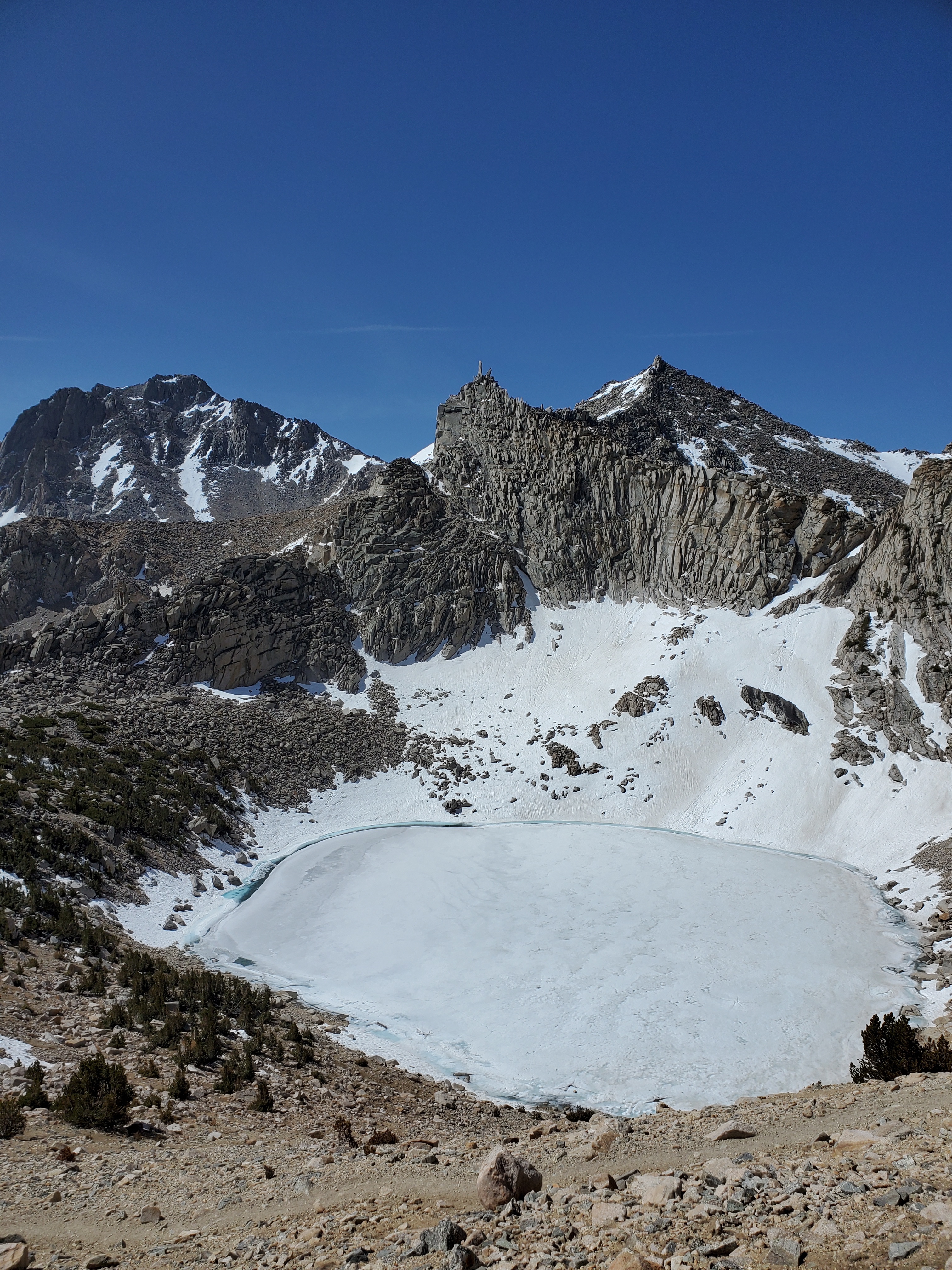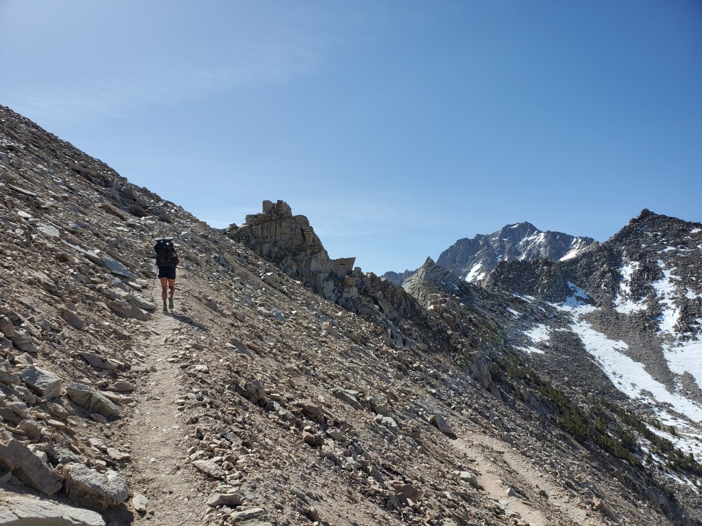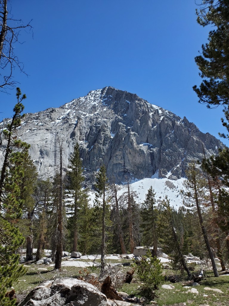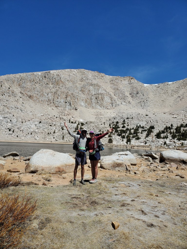 We took a snack break before the last climb of the day. We cruised up, passing several hikers. We saw a few more hikers looking beat, resting on the side of the trail. We knew what they had been through. We went a little ways up Kearsarge Pass trail to set us up for resupply. Amazingly, we were done hiking by 5pm. We sat and talked in the last few hours of sunlight, feeling both worn down and accomplished with our pace through the Sierras. We camped by Bullfrog Lake, feasting our eyes on the unreal scenery of high peaks and alpine lakes.