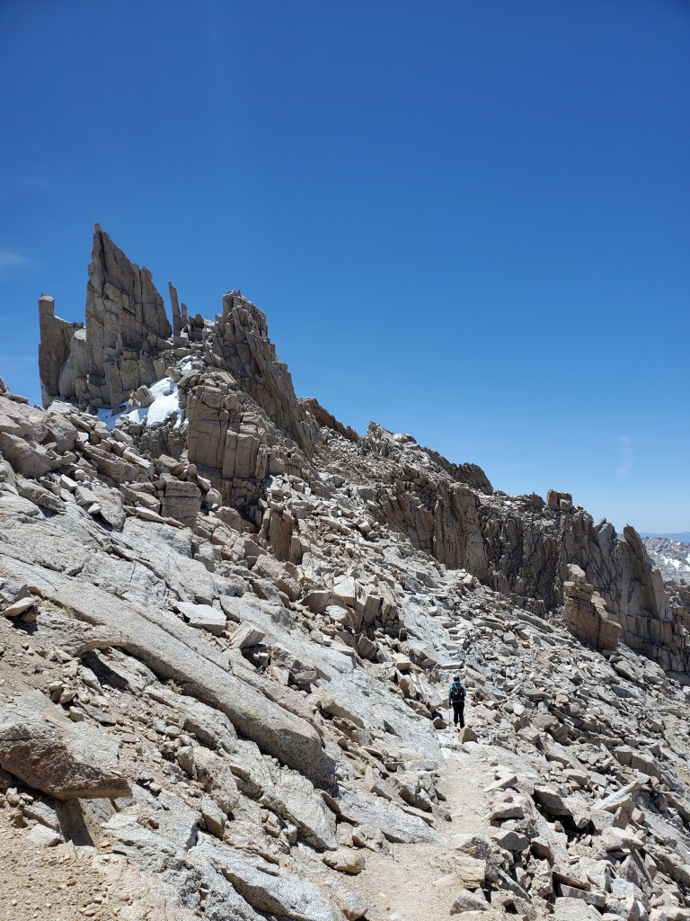 We cruised down, since the peak was only part of our hike for the day. I felt good until the last 3 miles. Sore ankles from 4,000 feet of vert and hungry from rationing food. That said, the west route up Mt. Whitney kind of felt too easy for a 14er, pretty much Class 1 hiking. Other hikers expressed similar feelings. Maggie and I agreed to come back and attempt the mountaineer’s route, as well as the east ridge of Mt. Russell, another CA 14er next to Whitney.