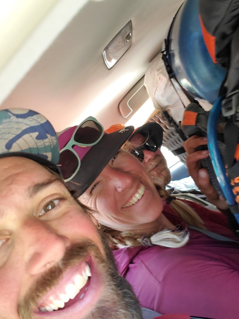 After an hour or so, word was spreading of the first guy offering a ride. We were 3rd in line, but the driver wasn’t going to Bishop. He pulled up and said, “I can take four to Independence.” We looked around eagerly seeing if anyone else was getting in. An older couple took the first two seats, but the Bishop bound folks passed on the offer, so Maggie and I got in. The silver prius was at max capacity with three of us in the back seat, our packs on our laps, and unable to see out front or the two faces up front.