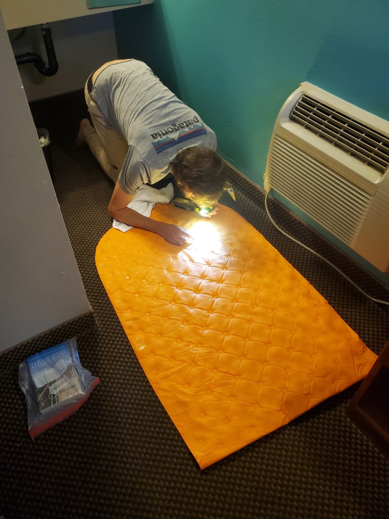 Maggie and I slept in till 7:30 and we ambled a few blocks to the Alabama Hills Cafe for breakfast. The reviews were overwhelming positive, and the food did not disappoint. Maggie got her classic veggie omelette, and I got a scramble with sausage and veggies. We ordered some extra French toast to make up for our calories lost on the trail last week. We felt tired and sluggish that morning, and I was seriously considering staying another night in town… Back at the hotel, we cleaned and organized gear. An hour before check out, I decided to investigate my leaky pad by filling up the tub and search for bubbles. I found two small holes and patched them up, buying some time until the next leak.