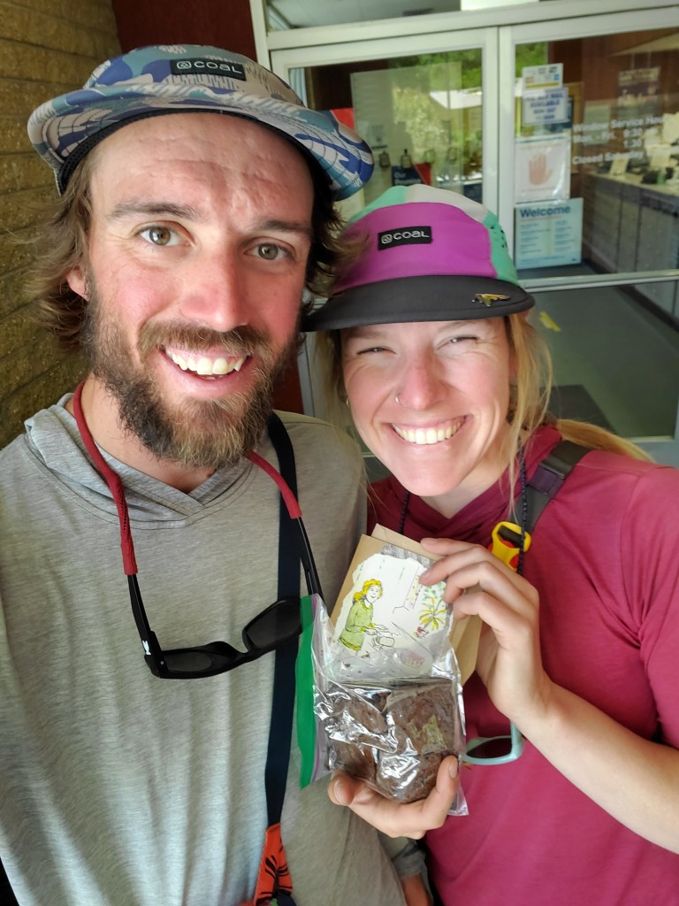 Maggie’s new pad she picked up in Tehachapi had already started leaking, less than two weeks after first using it. She decided to give up on the inflatable pad, so we went to the gear shop and she bought a new closed cell foam pad. Foam isn’t nearly as comfortable, but it will never fail you. We went to the post office next. Our first trail angel, Jane, from San Diego sent us some banana bread and brownies! We devoured them later on the trail and they were delicious.
