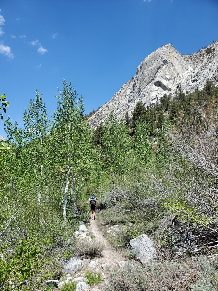 At last time for resupply, we wandered over to the grocery store. Thankfully everything in Lone Pine is within a 3 block radius, keeping our town miles to a minimum. As we worked our way through the 5 compact aisles in the market, a woman looked at us and asked, “Do you need a ride somewhere?” I suppose the giant backpacks are a dead giveaway, but still, an unprompted gesture of kindness like that is unbelievable. We explained we would need a ride in an hour or two and the woman, Sheena, agreed to take us back to the Kearsarge pass trail. We shoved as much food as we could into our bear canisters, picked up some sandwiches to go, and Sheena swooped us up for the 40 minute drive back to the trail. She was a peak bagger in town waiting to summit Mt. Whitney. With time to kill, she was happy to help out some fellow outdoor enthusiasts. We gave her some recommendations for Colorado 14ers and said farewell at the trailhead.