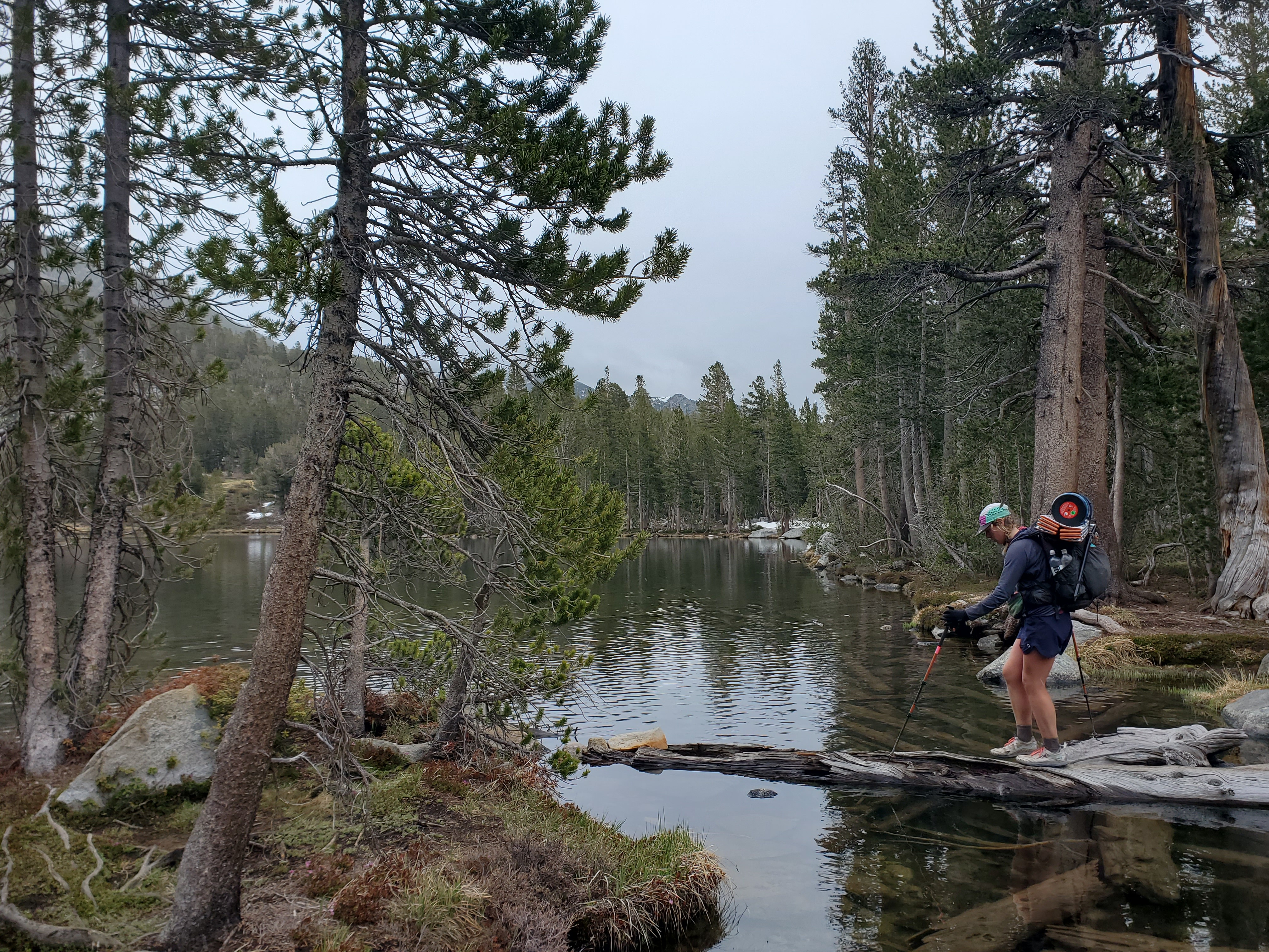 The hike down was a cake walk compared to previous passes. After the punishment we endured on Muir Pass, the half mile or so of snow on Selden was no big deal. Down through lodge pole pine forest, we got to the Bear Creek crossing. This was definitely a crossing that required three points of contact, slowly taking one step at a time. We heard that in high snow years, hikers may have to swim, so we were thankful it wasn’t a big deal when we crossed. We ate lunch on the other side of the creek, watching a handful of hikers come up behind us to do the creek crossing.