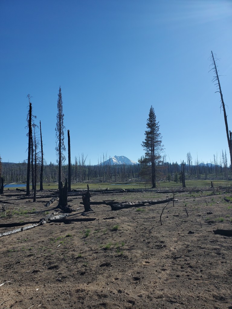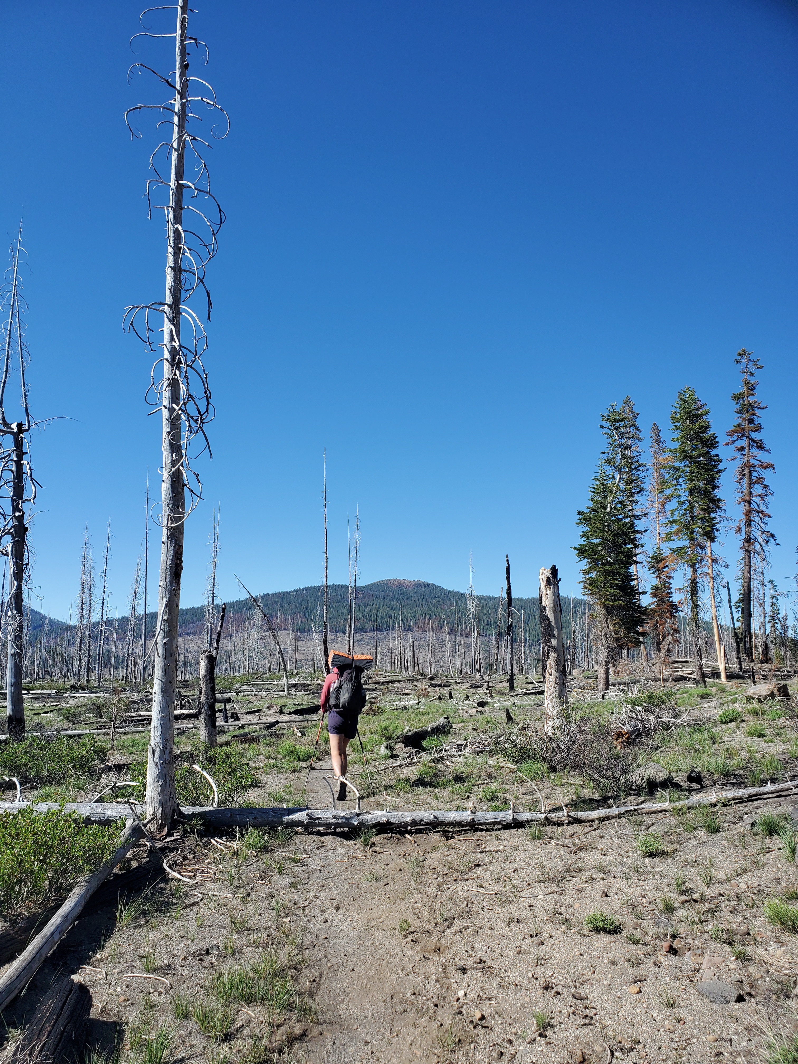 We begrudgingly packed up and hiked through more burn. The hours dragged on. Aside from wanting to get out of the burn scar, we had to get through Lassen NP where bear canisters are required. We made it to the park boundary after hiking 25 miles.