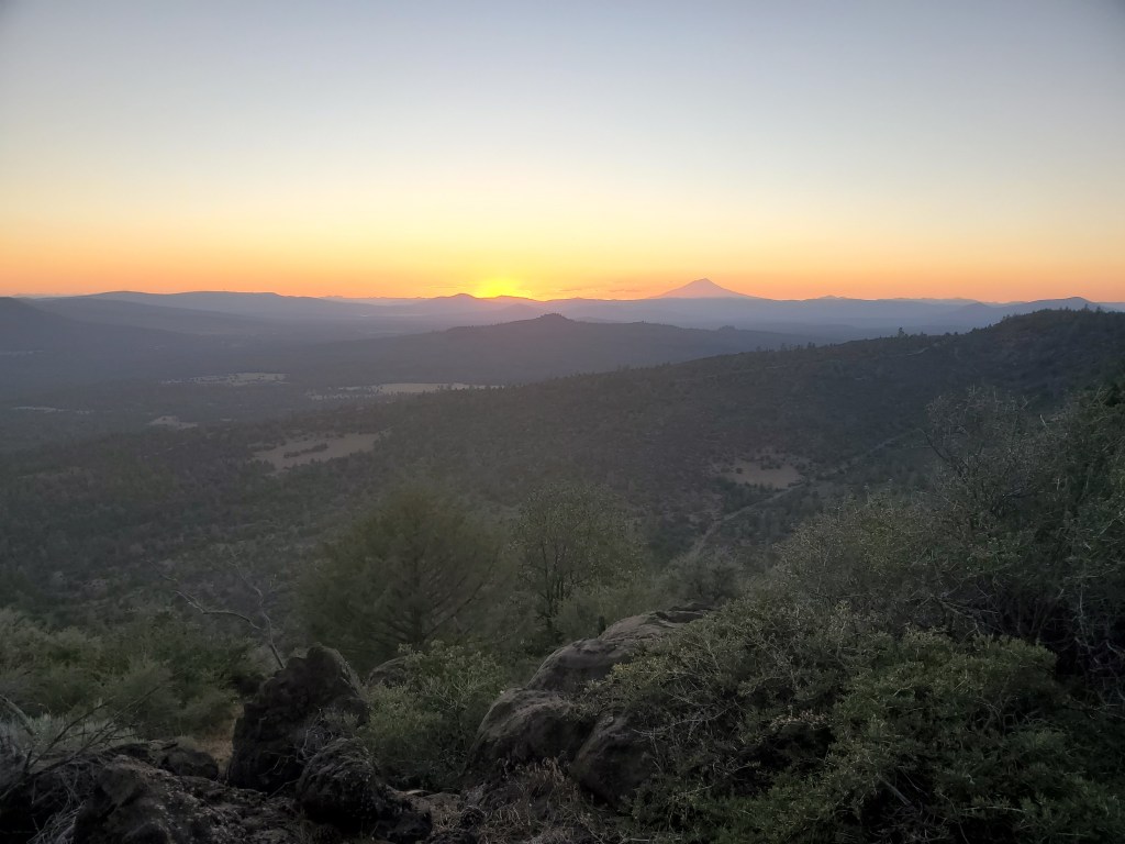 Feeling the need to get some miles behind us, we set off again around 4pm. We wanted to push another 13 miles, and so we pushed. We hiked as fast as possible across the rim. It was warm, but cooling off and breezy. We took a break under some tall pines around 6:30, satiating some pre-dinner hunger. We hiked into an epic Mt. Shasta sunset, which was pretty enough for us to stop and take pictures.