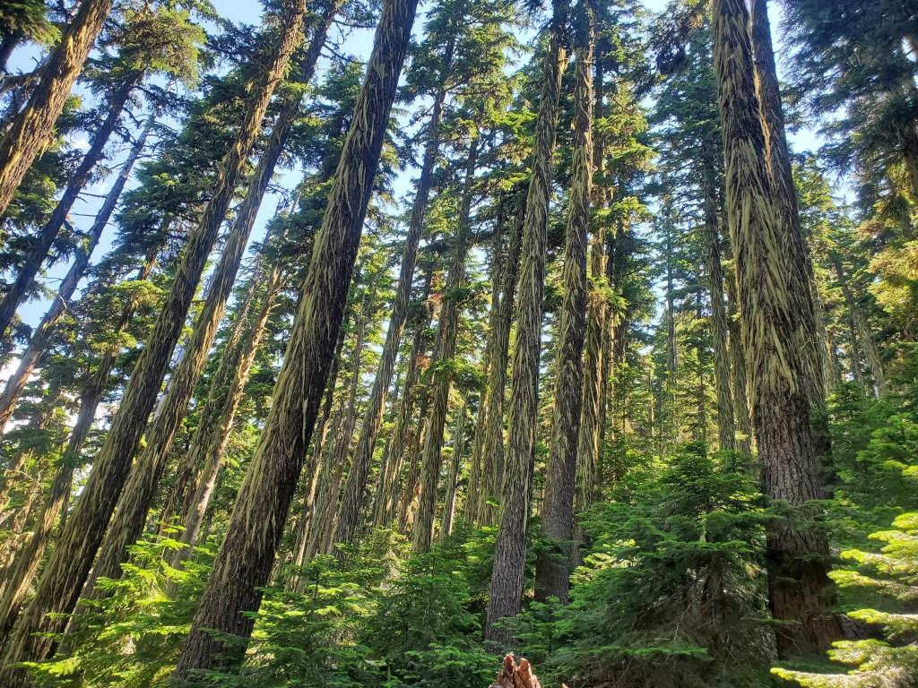 On the trail again, we meandered through more hemlock forest, the bugs off and on now, but nothing like the morning. We crossed the 1,900 mile mark on the north end of Diamond Peak – another hundred in the books!