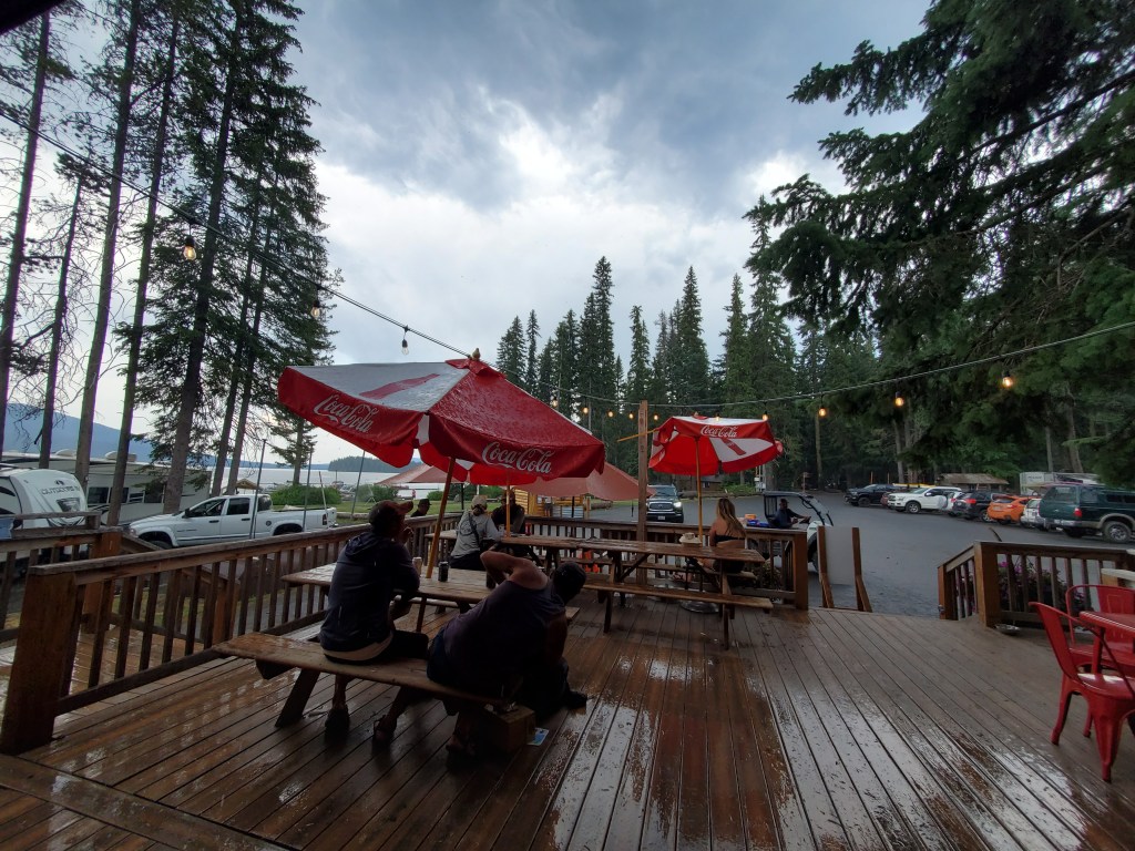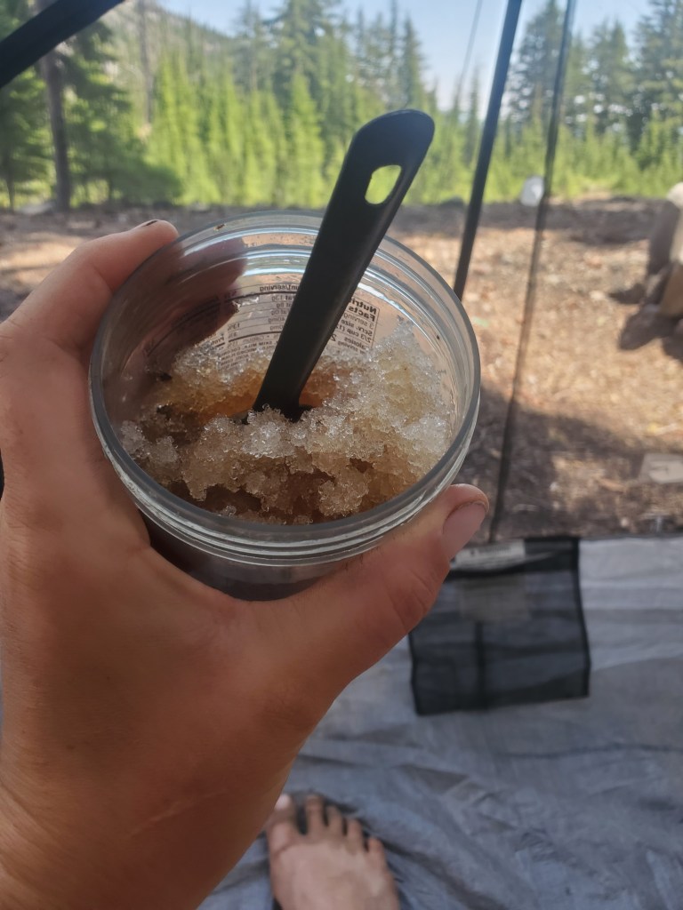 Maggie and I didn’t have any big plans, so we chilled at Shelter Cove for most of the day. We got out of camp and found a line of hikers at the storefront just before they opened at 8 am. We got some microwaveable breakfast and posted up under the PCT pavilion. We met a bunch of new hikers. Did laundry. We picked up our resupply boxes and reorganized. It rained yet again – who knew the Cascades get summer monsoonal thunderstorms? Not too eager to set off in the rain, we bought the last six pack of Montucky Cold Snacks to pass the time.