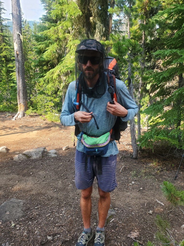 Looking ahead, we still had plenty of time to kill before Santiam Pass, so we decided to climb South Sister the next day, a substantial 13 mile side trip with 4,000 feet of vert. By mid-afternoon, we hiked out to Mirror Lake. There were killer mosquitoes yet again, but by now, we had dialed in the PPE and tent routine.