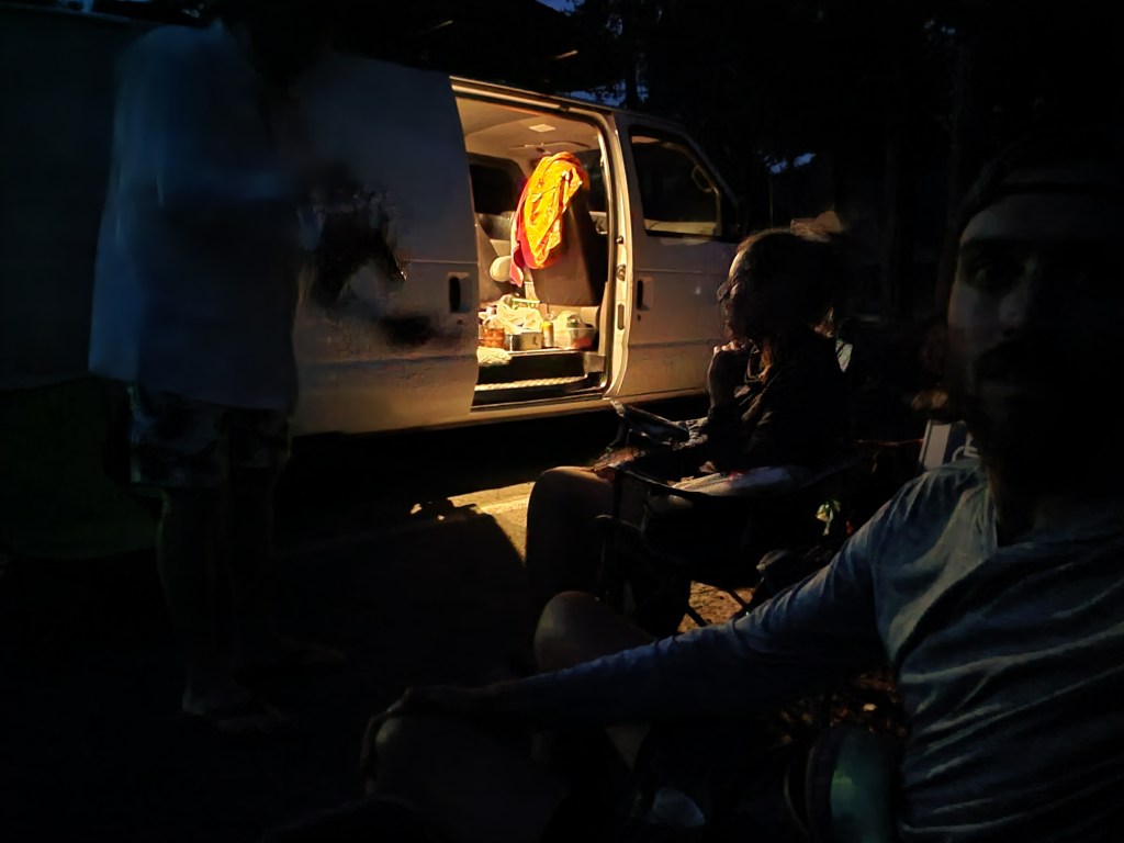 Rockin’ Dave appeared on a little TV show called Diners, Drive Ins, and Dives a couple years back, serving up his house made pastrami to Guy Fieri. We all talked more about the trail, food, and dreams we had for the future as the evening wore on. Eventually, the women left, the restaurant closed down, and most everyone cleared out except Maggie, Dave, and I. “Do you want some sangria? I’ve got some in my camper van,” Dave asked. We happily accepted, and we went to check out his van set up. The three of us chilled in the parking lot till dark, making mom proud by accepting drinks from a stranger in a van.