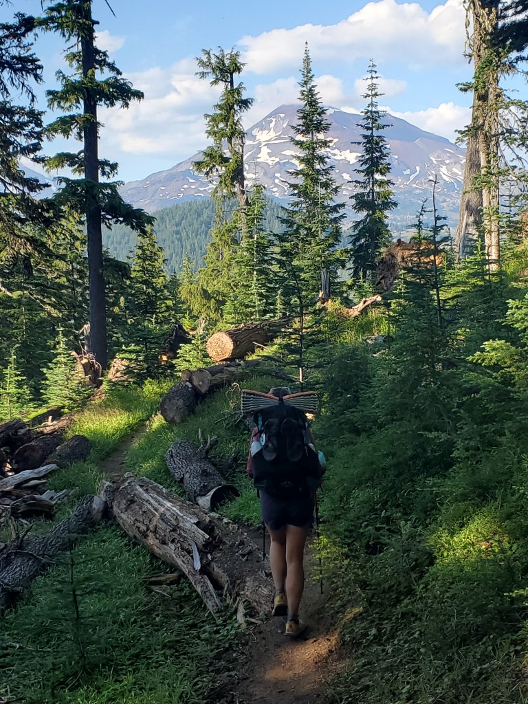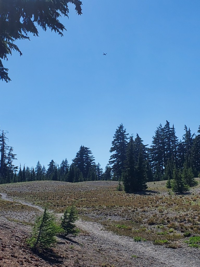 After taking in the view for half an hour, the time came to hike down. We crossed paths with three PCT hikers, Dusty, Run Away, and Star Boy, joyed to see folks from our thru hiker community. The hike down was uneventful, and naturally a bit easier than the climb up. We took a 2 hour second lunch break under a group of big hemlocks, killing time and resting up from the hefty climb. As we were getting ready to pack up and get back on the PCT, we heard a plane flying low in the vicinity. Then we saw a thin veil of smoke rising up from the northwest, directly where we were supposed to go. We checked online and called the local US Forest Service office, inquiring about wildfire activity. “West side of South Sister? Yeah, there’s nothing over there, you’re good,” the guy said on the phone. I had a feeling that he didn’t have the most up-to-date information…