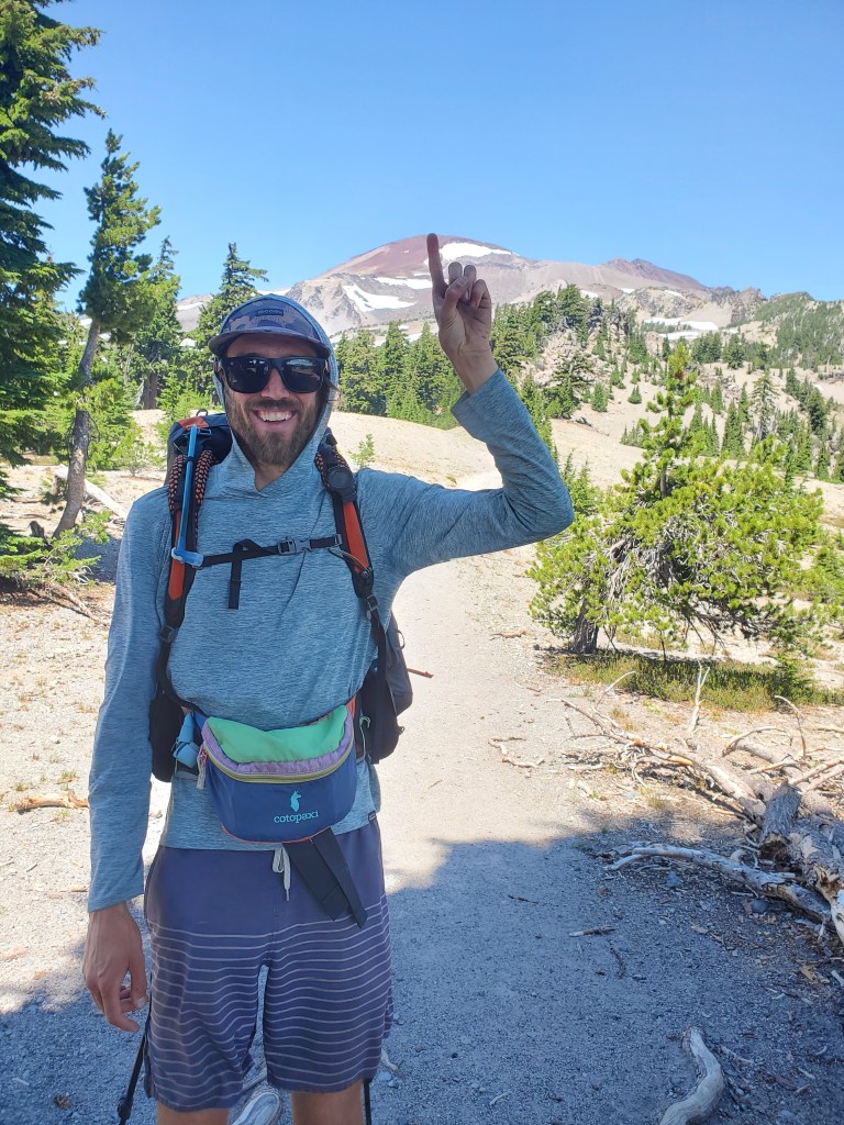 Standing at our trail junction for awhile, we decided to bail. The fire was right in our path and the wind was still blowing strong, and we simply did not have a good feeling about it given the wildfire activity all around us lately. We later learned from Dusty, Run Away, and Starboy that the fire was indeed visible from the PCT. They had left their nonessential gear at the base of the peak, so they felt compelled to retrieve their belongings. They obviously survived to tell the tale, but Maggie and I felt vindicated in our decision to play it safe. We hiked down the Devil’s Lake trail to the road and tried hitching for a few minutes. A group of four day hikers passed by at the trailhead, and we sheepishly asked if they were heading towards Bend. Chad, Sarah, Fiddy Mike, and Sarah were from Bend, and they agreed to take us into town, but first we had to join them for a cold dip in Devils Lake. We sat in the 45° lake, chatting and getting to know each other. The ice bath was exactly what we needed after climbing South Sister! We piled in the car for the ride to Bend. Chad and Sarah graciously let us shower and play with their Great Dane, “Wille Nelson”. Maggie and I made some calls to hotels and hostels, and everything was either booked up or too pricey, so Chad and Sarah agreed to host us! We were floored by their generosity, but it didn’t end there. They treated us to Thai food for dinner, and Maggie and I wondered how we happened upon such wonderful people. Back at the house, we set up air mattresses in the office, and drifted off to sleep, feeling safe and filled with happiness.