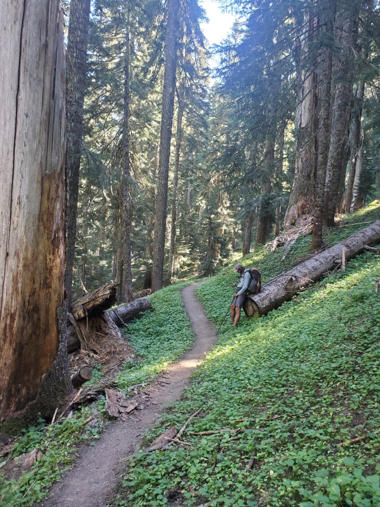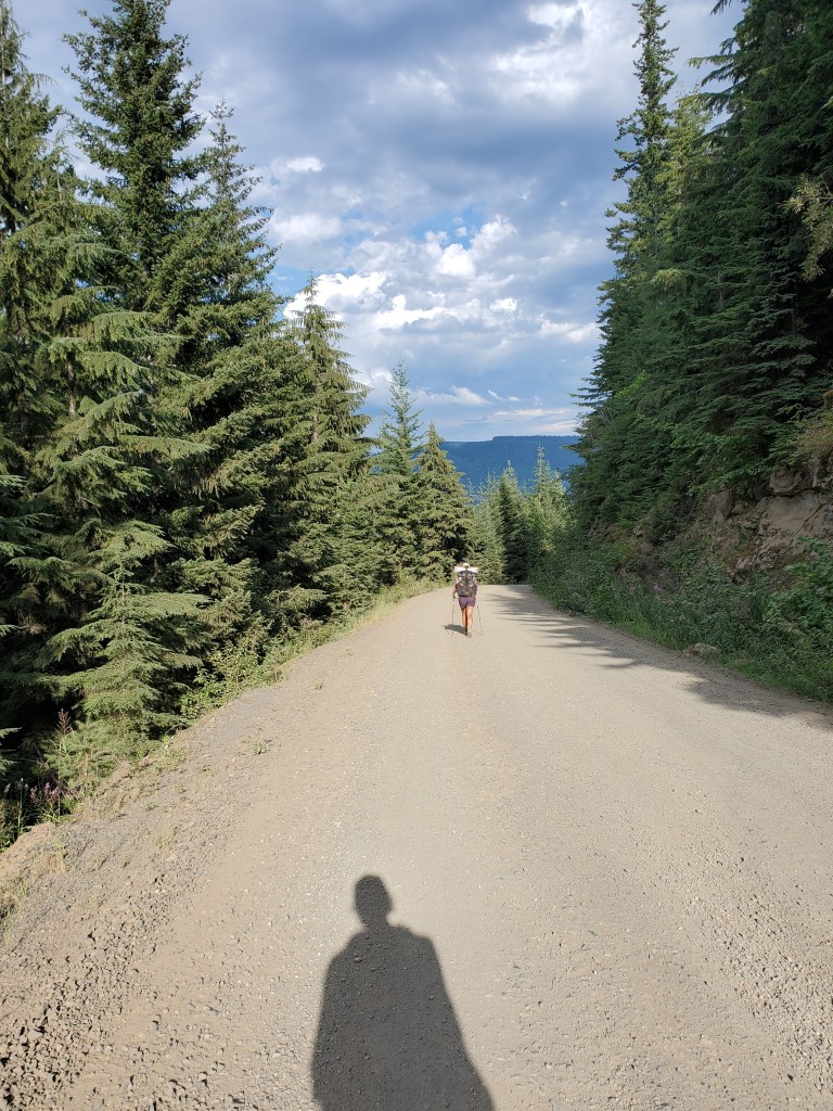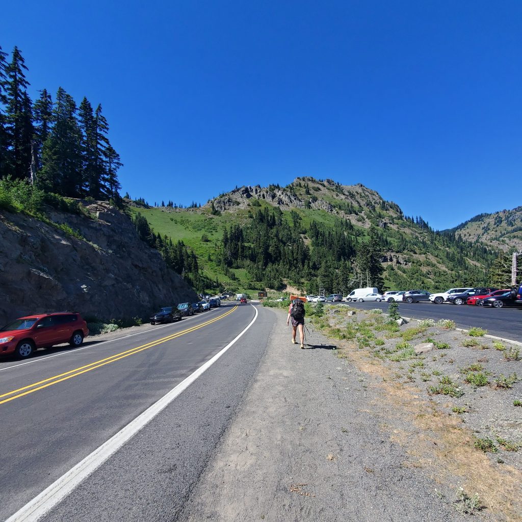 Maggie and I left the exposed camp site and passed through a lot of boring forest. There was no shortage of hard little ups and downs near logging areas. It was uninspiring, to say the least. We stopped for a water break with a few hikers, including Aquaman and Straps. We had been planning to stay in the Washington Alpine Club (WAC) bunk house at Snoqualmie Pass. Straps informed us WAC was closed due to norovirus outbreak! There were tons of comments on Far Out of hikers reporting they had gotten norovirus, so it seemed wise to book a hotel room to isolate from the outbreak.