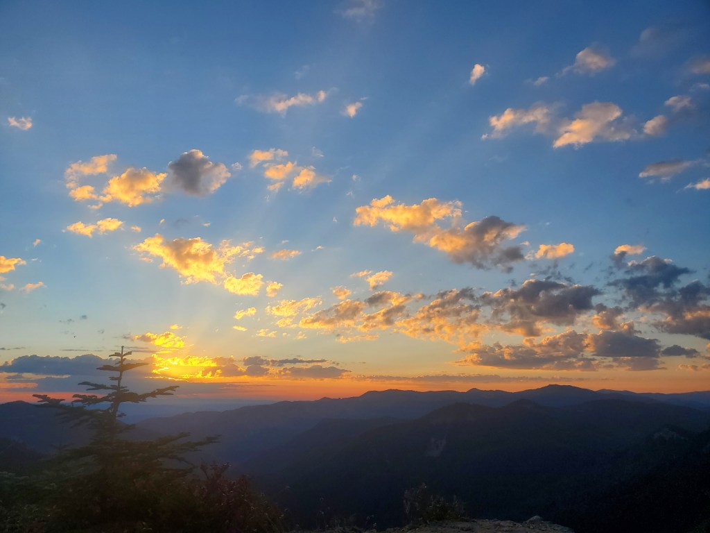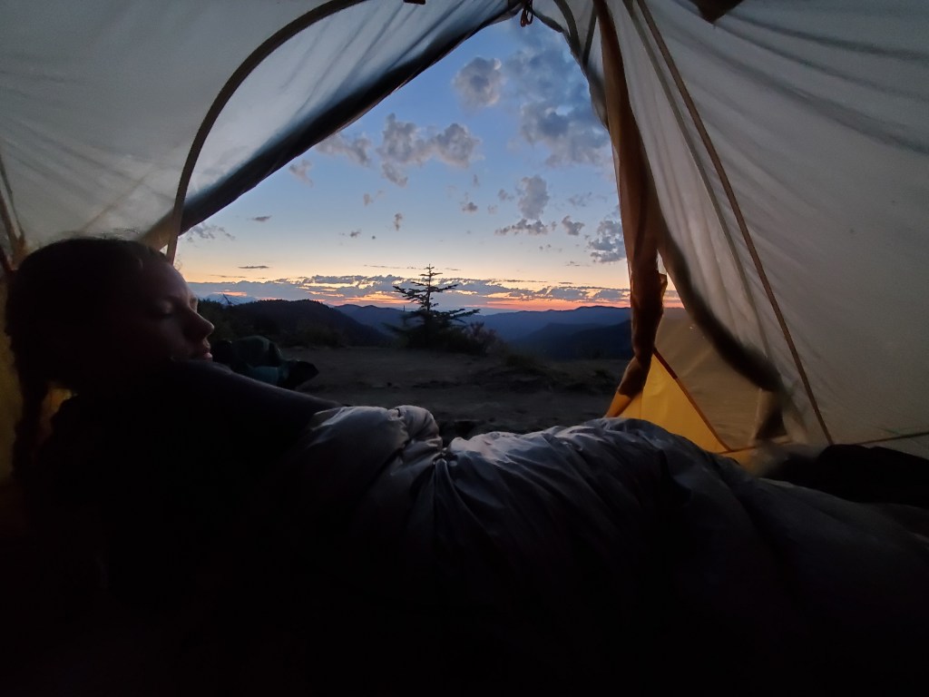 We were rewarded further by a nice sunset and loads of huckleberries! Only one other hiker joined us later in the evening, not that there was space for much more than that. We listened to the wind stir through the tree branches as we dozed off.