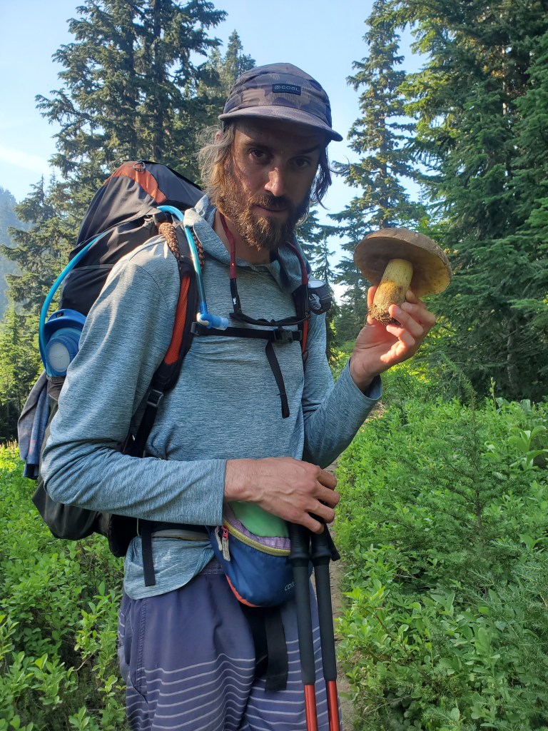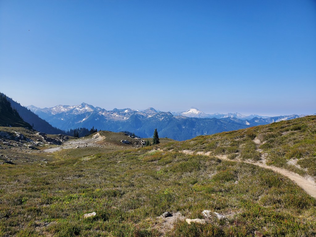 All that goes up must do down, so we went down the next hill. Fresh blueberries were back on the menu, they were almost hard to avoid at this point. The trail went back into the forest, now with many large conifers the PNW is famous for.