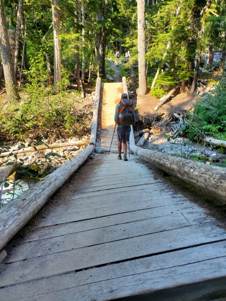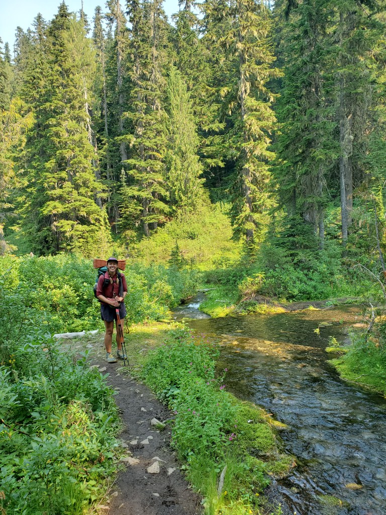 We were moving at 7:30 am. It was an easy morning as the trail descended gently along the Vista Creek. The old growth was becoming more frequent, especially near the Suiattle River. Western red-cedars and Douglas-firs stood 8 feet wide.