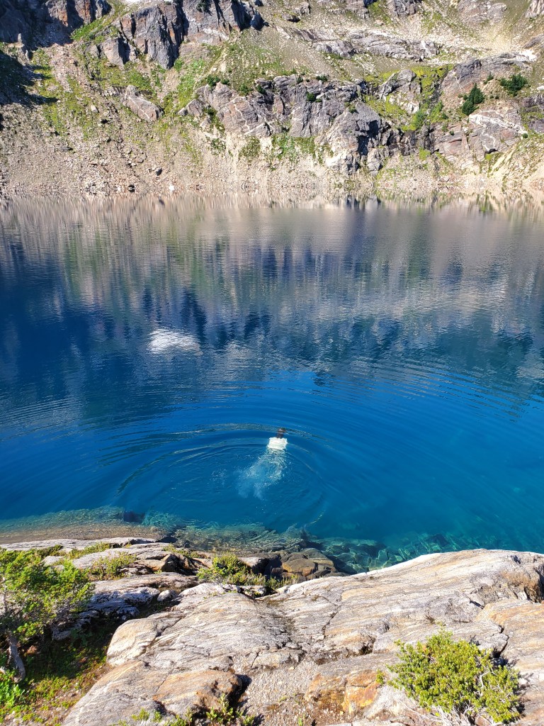 We descended down to Mica Lake, yet another icy blue, dead clear alpine lake. We could see fish from 100 feet away!