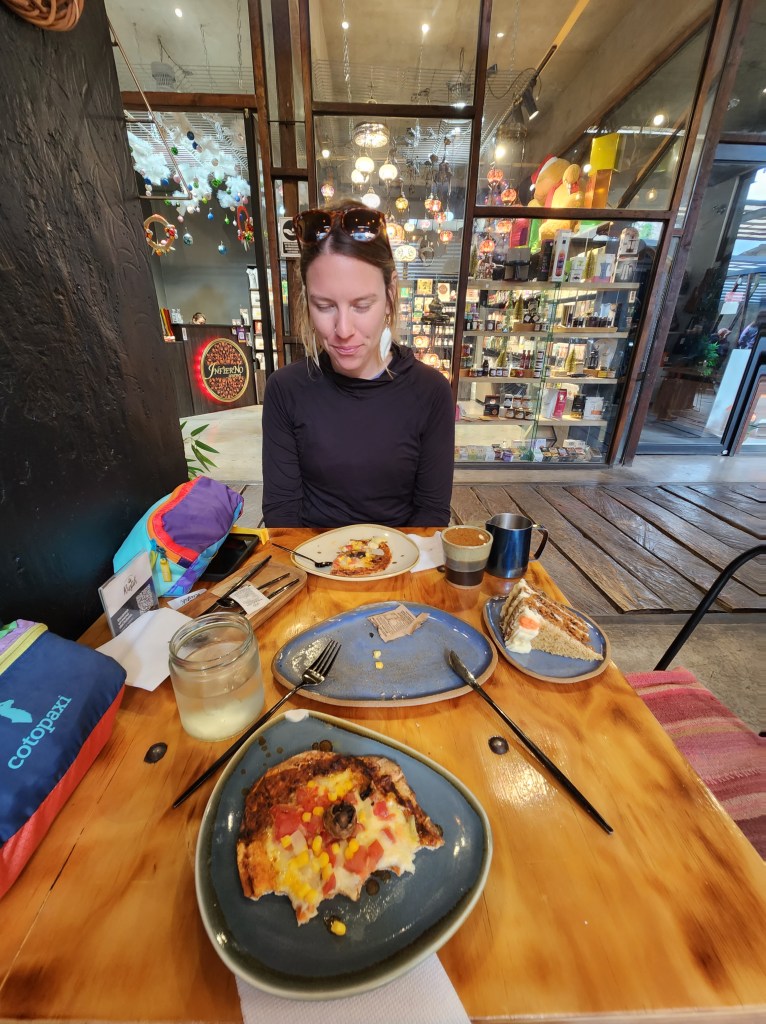 The three of us wandered a bit more, then we said goodbye and good luck to Shannon, as she had two more days of travel just to get to Ushuaia. Maggie and I were spent, so we went back to the room to lay down for a while. It felt like we were wasting the vacation a little, but it also felt like we had already seen everything in a 1 mile radius of our hostel. Hunger finally drove back outside, but still, most everything was closed, even the grocery store… We settled for empanadas from a lovely little corner market. With the city shut down, we returned to the hostel to lounge some more. We used the time plan out our next stop, Rancagua and the National Reserve for Andean Cypress. Eventually, we went out for dinner in the Lastarria neighborhood. It was slim pickings again, and most everywhere was jam packed, but we were able to get veggie sandwiches.