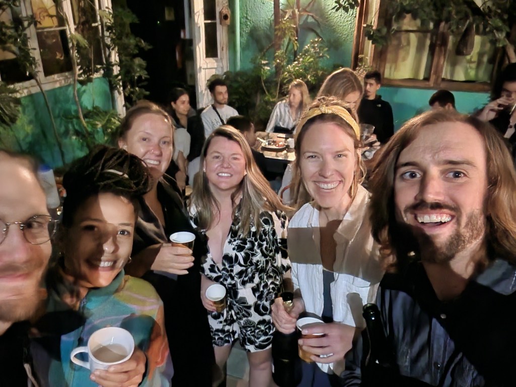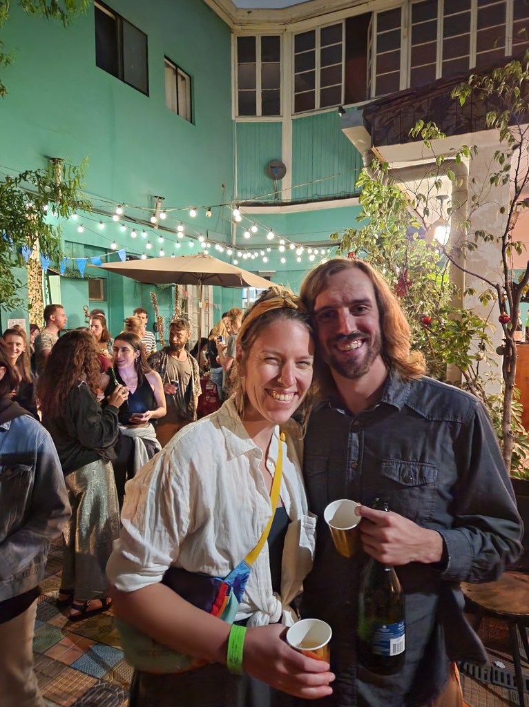 We walked back to the room to rest up before the party. As the evening approached, we could hear the hubbub slowly growing in the courtyard, so we ventured out to join the fun. I bought a six pack of beers and we posted up at a six person table. A German couple sat next to us, sipping wine from their coffee mugs while slicing up a nice block of cheese. We got to talking, and they too were heading south for the Torres del Paine trek, followed by several months of traveling through South America. They said they were almost surprised to see Americans, since it’s a stereotype that Americans don’t leave America. I, for one, was happy to break that stereotype (finally). A British woman and a Brazilian woman took the last two seats at our table, and we all swapped stories of our travels. As the light turned into dark, the hostel staff announced that dinner was ready (at 10 pm). We were learning that South America runs a bit later than the U.S. As the beers dried up, we approached the bar, and it happened to be just a couple minutes before midnight. The bar tender realized the time and he started handing out dozens of bottles of champagne, left and right.