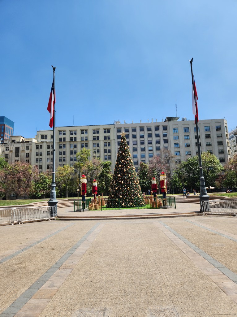 We set an alarm for 8 am, hoping to get on Chile time (UTC-3, +4 hrs from Mountain Time). We ended up snoozing until 10… We put some clothes on and went out for breakfast. Again, the restaurant was in a small space, so we waited about half an hour for a seat. Most businesses seem to occupy a smaller footprint than what we’re accustomed to in U.S. The veggie omelets were amazing. A pair of American gals sat next to us, and we overhead one of them was from Connecticut. Turns out she grew up in the town next to Maggie’s – small world! We’ve learned that the dining experience in Chile is never fast. While it feels impolite to flag down a waiter in the U.S., it felt like we were being actively ignored if we didn’t ask for attention. All this is to say we were done with breakfast a little after noon. We checked back at the hostel to see if our backpacks had made it, and sure enough they were at the front desk! Honestly, it couldn’t have worked out better, because the delayed packs meant that we didn’t have to haul them through Santiago. We also signed up for the New Year’s Eve dinner and party with the hostel. It was time to explore the city!