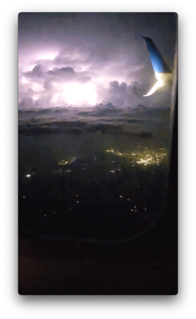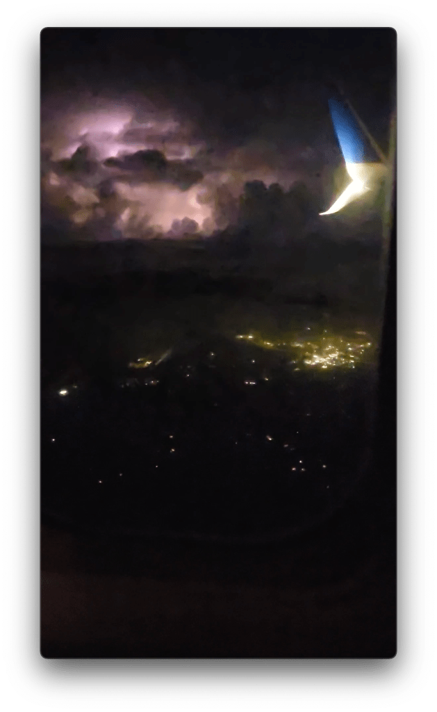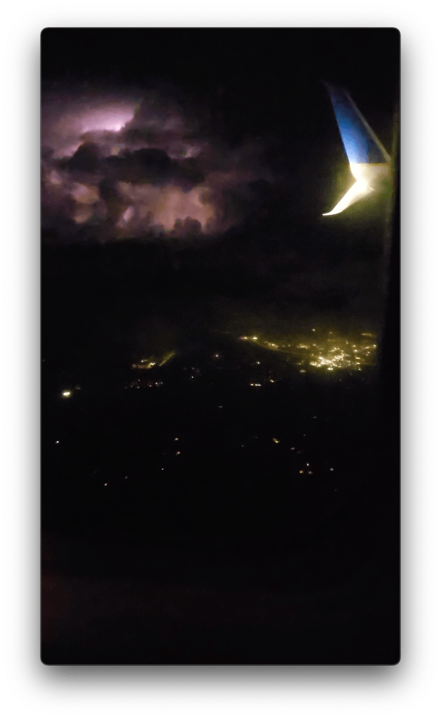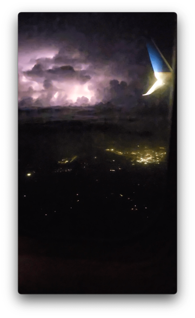 Our new flight itinerary was Denver -> Dallas -> Houston -> Santiago. We got off the ground the first leg out of Denver went smoothly. It was a quick, easy layover in Dallas – we literally walked 3 gates over and immediately got on our connection. However, we sat on the runway for an hour… I was starting to think some cosmic power didn’t want us to go to Chile. There were thunderstorms in Houston, and all flights were grounded, in and out. Our plane went back to the gate. As we waited in the plane, temperature and humidity ever increasing, I talked with a nice man from El Salvador, a brief Spanish practice session. The time wore on and it was looking like we were going to miss our connection in Houston… again. There was a sliver of hope, given that no flights were leaving Houston, so our flight to Santiago might be equally delayed. Our plane taxied back out on to the runway and took off. Rather than taking the direct line from Dallas to Houston, the flight path took us all the way around central Texas to avoid the thunderstorms. We saw the lightning flashing in the clouds next to us at 30,000 feet. Wild!
