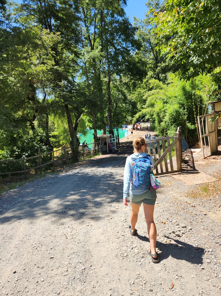 Maggie and I had hoped to walk down to a river hang out spot 4.5 miles out of town, but by the time we had lunch, it was too late for that adventure. Maggie found another river spot that was also sort of a public pool just 1.5 miles away. We went for it, walking along the road most of the way.