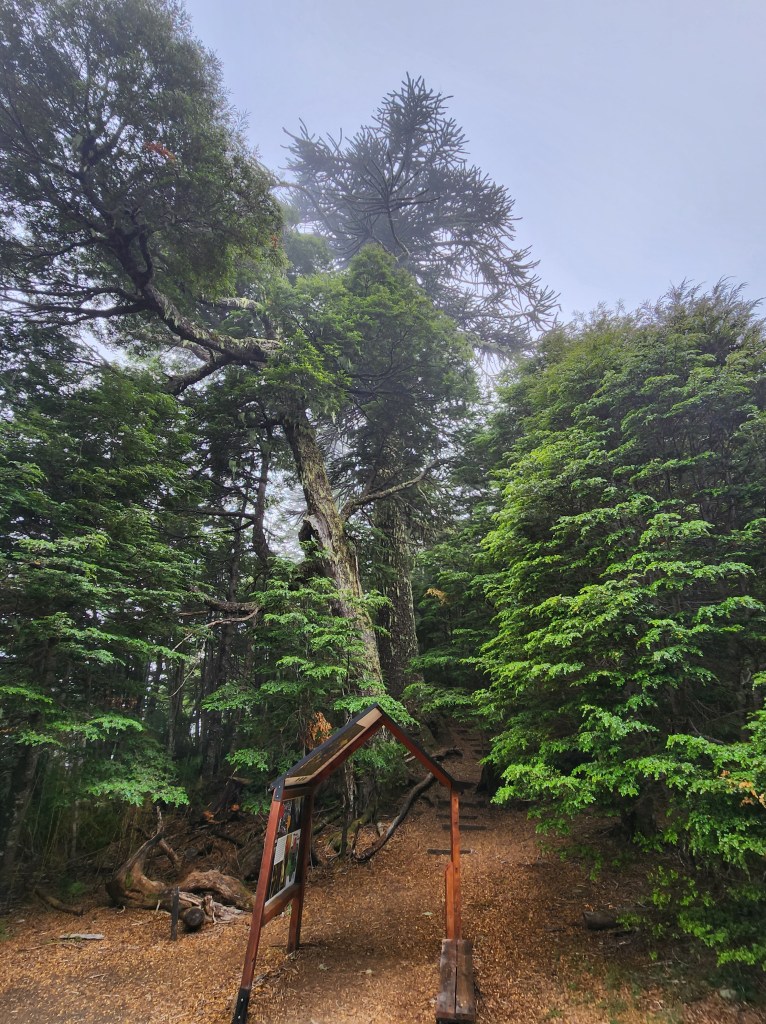 Maggie and I got dropped off at Laguna Captrén, and we double checked with our ride that we would meet here tomorrow at 10 am. Trusting their word, we set off into the mist on the Sendero Carpintero (Woodpecker Trail). We were immediately greeted by some massive trees, not just araucarias but also Nothofagus, southern beech. It felt like we had stepped back in time, or rather, we had found a place untouched by the hand of time.