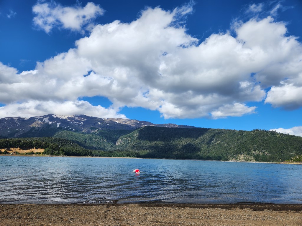 We dropped back to Lago Conguillío, and with the sun up, we felt compelled to jump in the water. It was cool and windy, but we were getting in. Maggie just went in to her knees to cool her feet. I took the plunge, and the water wasn’t nearly as cold as I expected. I swam for a minute, then we soaked in the view on the beach for a few more. We were happy and at ease to be chilling in the outdoors.