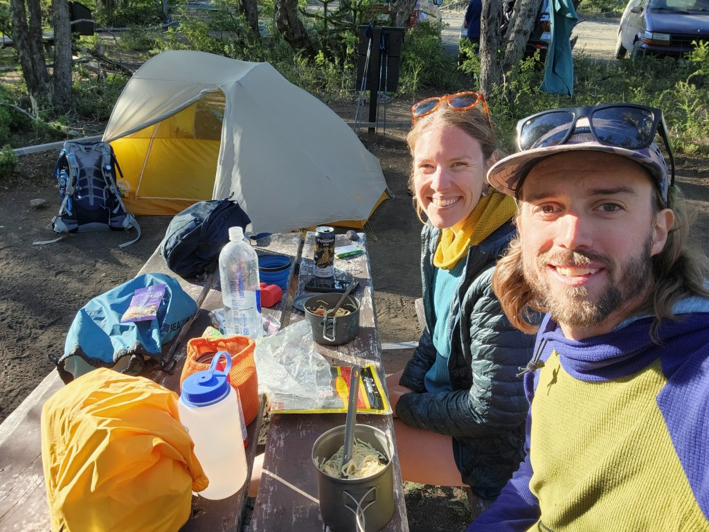 It was a short walk back to camp, making for 16 miles on the day, a respectable distance which felt surprisingly easy for us despite being more sedentary lately. We briefly met our neighbors at the campsite, but they made themselves scarce after we arrived. The sun was still high as we got dinner going at 7 pm. We sipped on the beers we packed out and we feasted on our ramen.