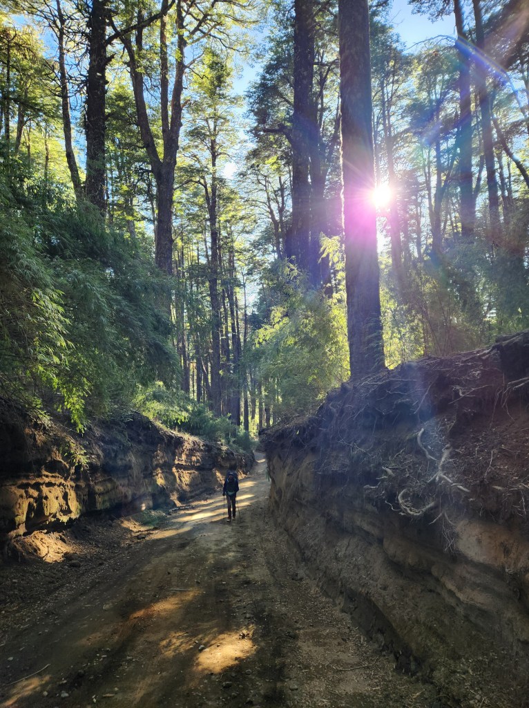 Camp was quiet at 6 am. Seems we are out of sync with “Chile time”. The sky had cleared up overnight, and the temperature had dropped, to the point of freezing the condensation inside the rain fly. What season was it again? We made our oatmeal next to the tent, seated in our sleeping bags and bundled up as we did for months on the PCT. The sun was peeking through the cracks between the trees. I still felt congested, but it felt like the sinus infection was subsiding. We were packed up a little after 8 am, and we began the hike out to meet our ride back at Laguna Captrén.