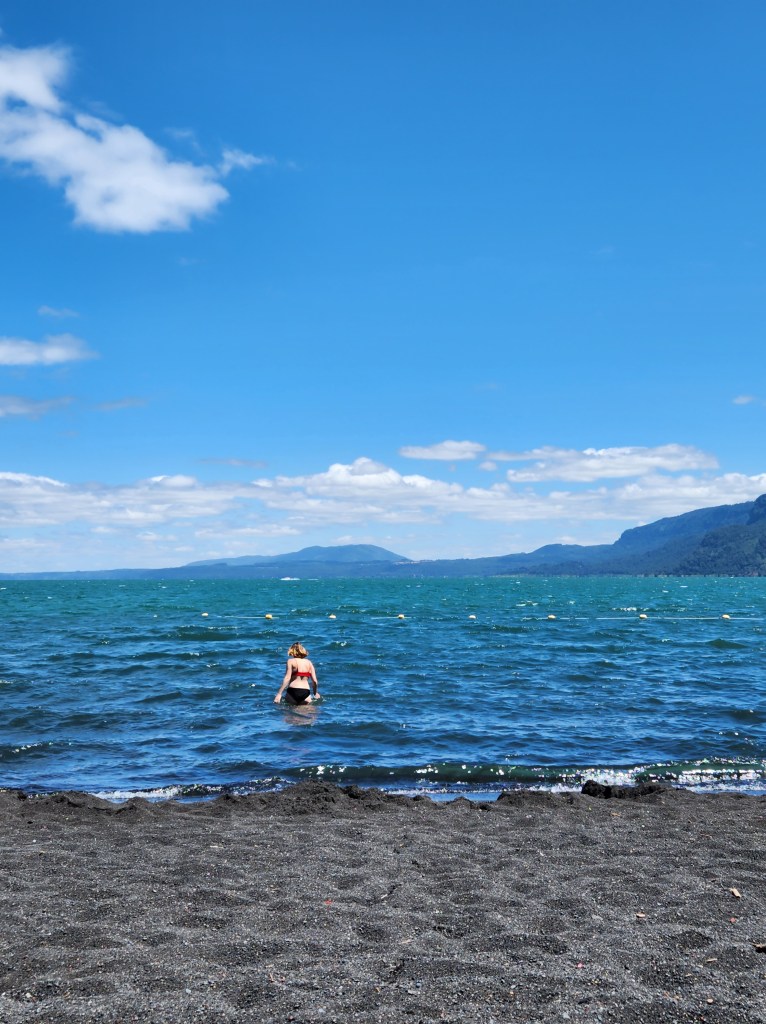 It wasn’t particularly hot, but we felt compelled to jump in the water of Lago Villarrica. With the western shore beyond our view and the waves blowing in, it honestly felt like the ocean, except for the lack of salt. Rather than sea gulls, small hawks called cara caras soared and scavenged the beach. It was super cool to see so many raptors casually hanging around humans.