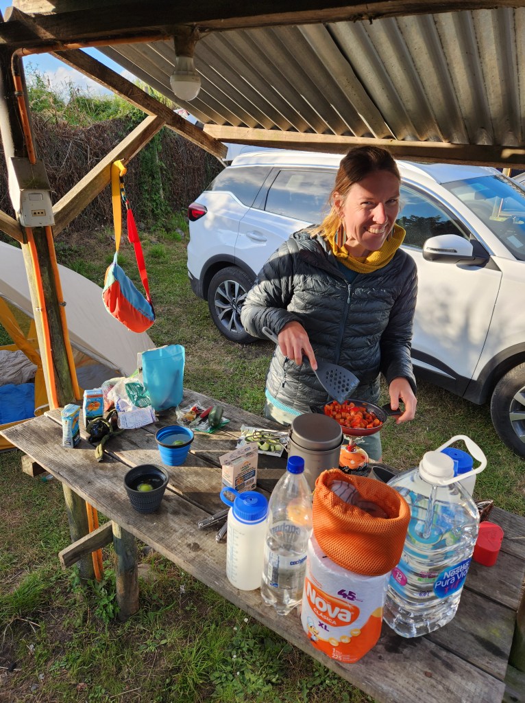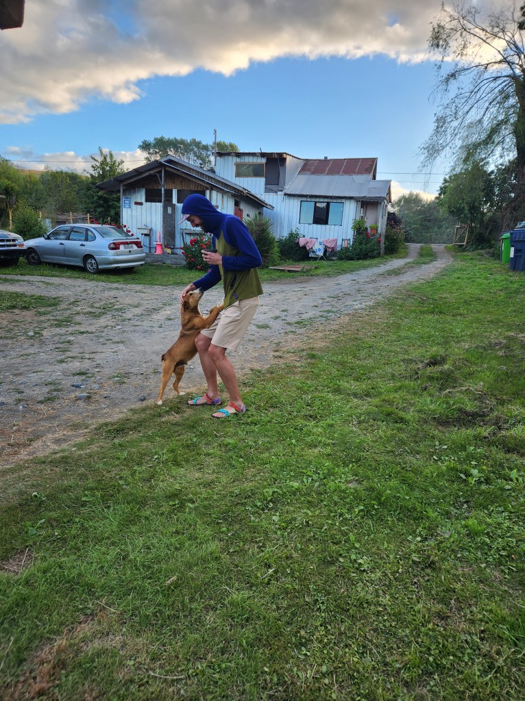 We pitched our tent then mixed up some gin and tonics to celebrate our new found freedom. The owner of the campground had a medium sized herding dog who took quite a liking to us, and we took a liking to him. The dog seemed to enjoy our pets and the occasional carrot we gave him. Our backpacker stove dinner of quinoa, chick peas, and veggies turned out pretty good. We stepped down to Lago Puyehue to take in the view before sunset.