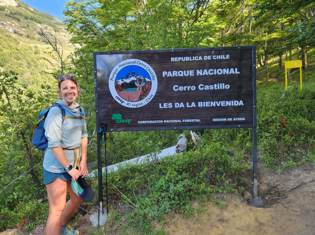 Maggie and I got out of camp just before 9 am, along with most everyone else, to head into the hill. It was a short drive to the national park. There was a sign marking “4×4 only” on the way, which was only for one steep downhill (this will be important later…). We parked at the Laguna Cerro Castillo trailhead with a decent crowd of people, but our plan was to hike a big loop. We set off down the road and walked one mile to the western trailhead.