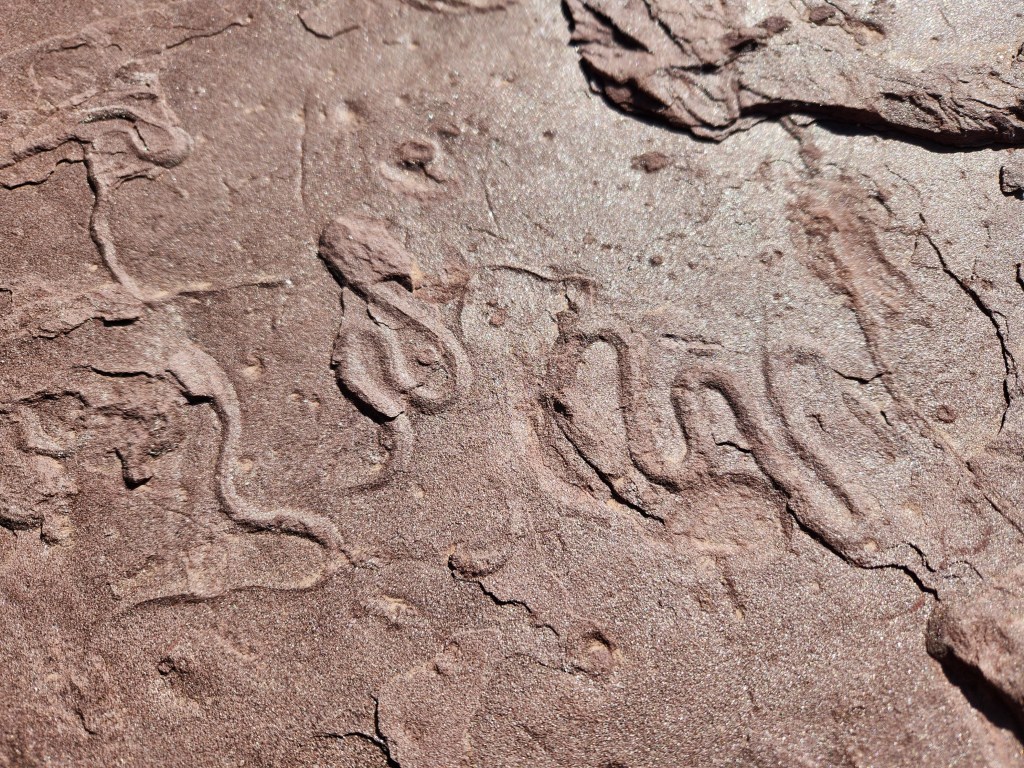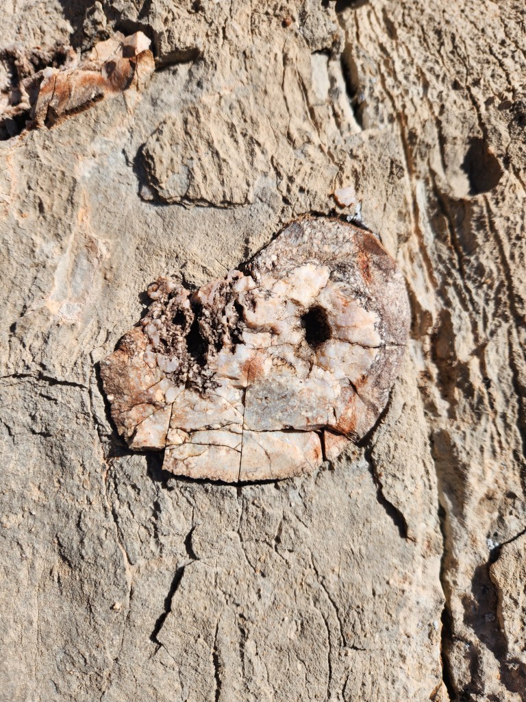 Maggie and I descended to the canyon bottom. Passing through eons of geology, we spotted some fossils in the limestone layers. Spiral mollusk shells, squirming critter tracks in ancient mud, and even some crinoid stems! Despite looking like plants, crinoids are marine animals related to starfish and sea urchins, and after 480 million years, they are still kickin’ to this day. Super cool!