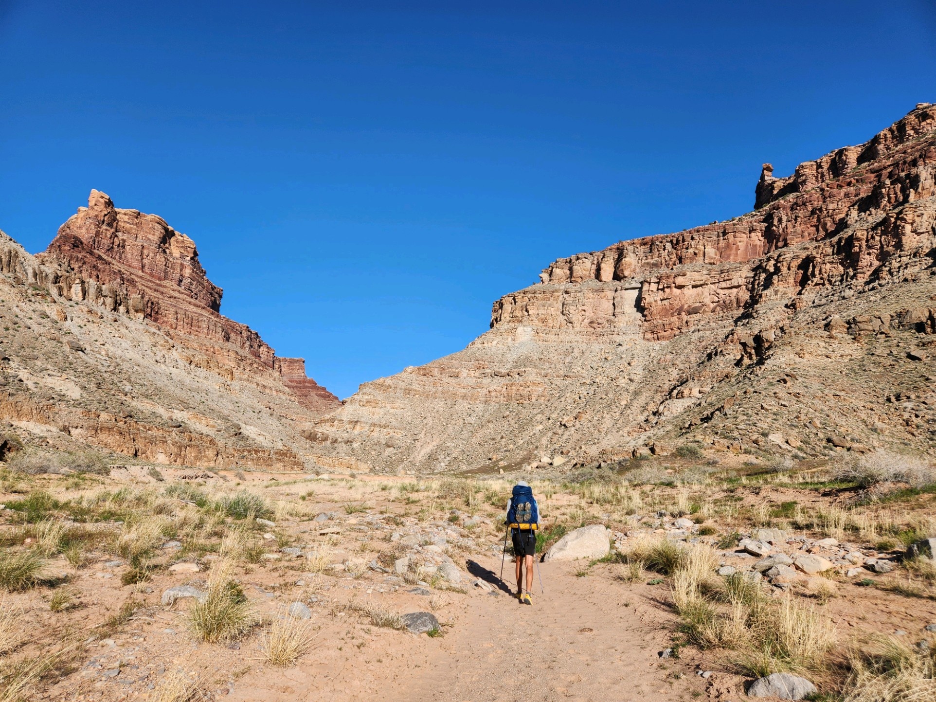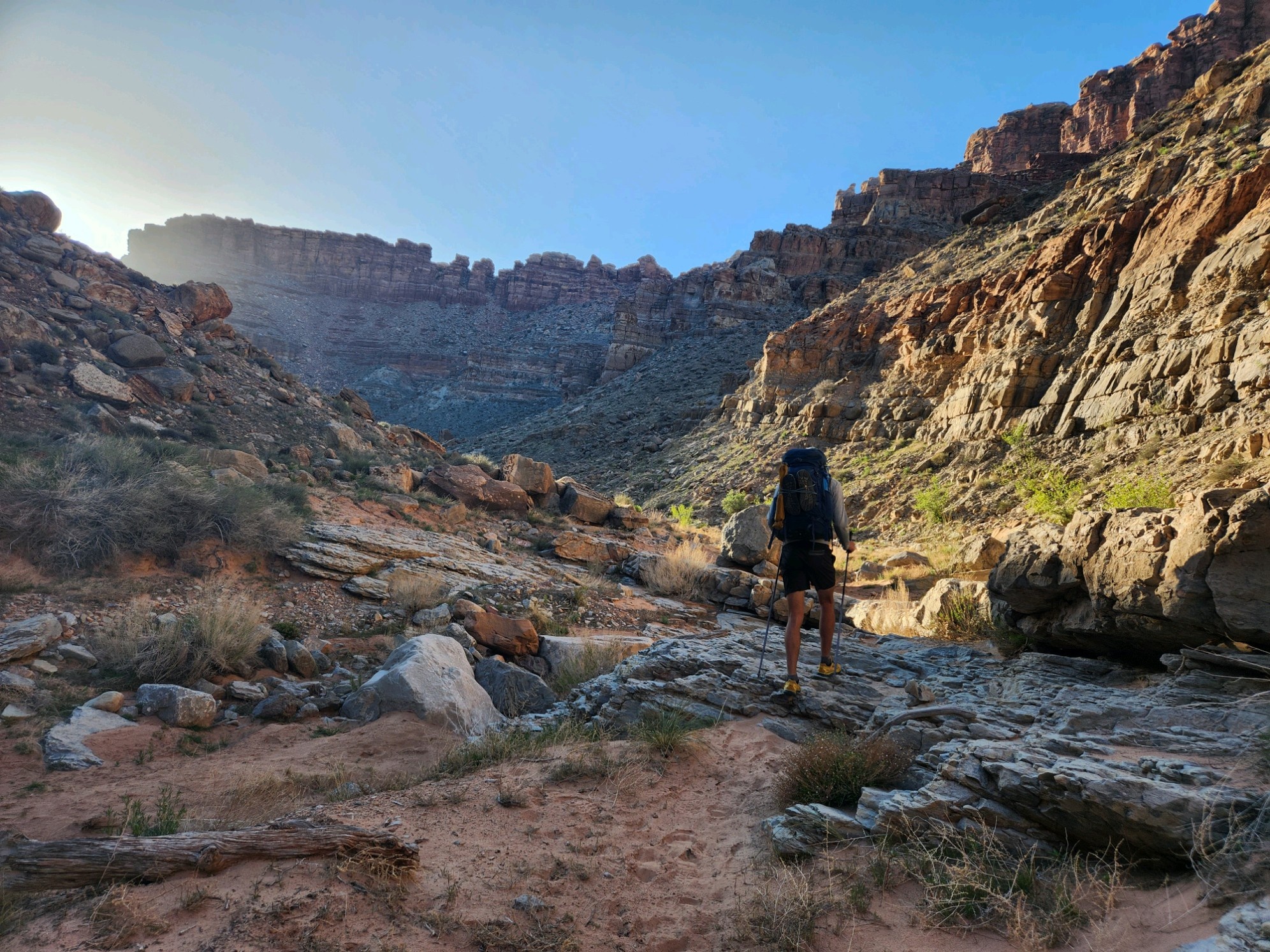 We were up and out of camp by 8 am the next morning. It felt wonderful to climb out of the canyon in the mild morning air, but the sun greeted us once we crested the rim.