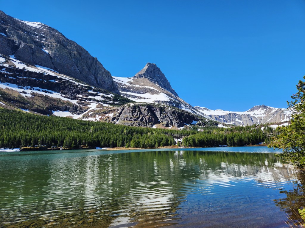I casually ate lunch at my car, sprawled out in the empty lot. I messaged Maggie to let her know I survived the four mile hike, then drove out a little ways. I noticed a little boat ramp leading down to Swiftcurrent Lake, so I took the opportunity to take a cold plunge. Full of fresh snow melt, the lake couldn’t have been much warmer than 35-40°F, so cold it hurt to step in. I went in for a few seconds but couldn’t handle it for long. Warmed by a little sunshine, I went back for round two, and stayed in for maybe 30 seconds. What a rush! The hot-cold sensation that pulsates through your skin afterwards is phenomenal.