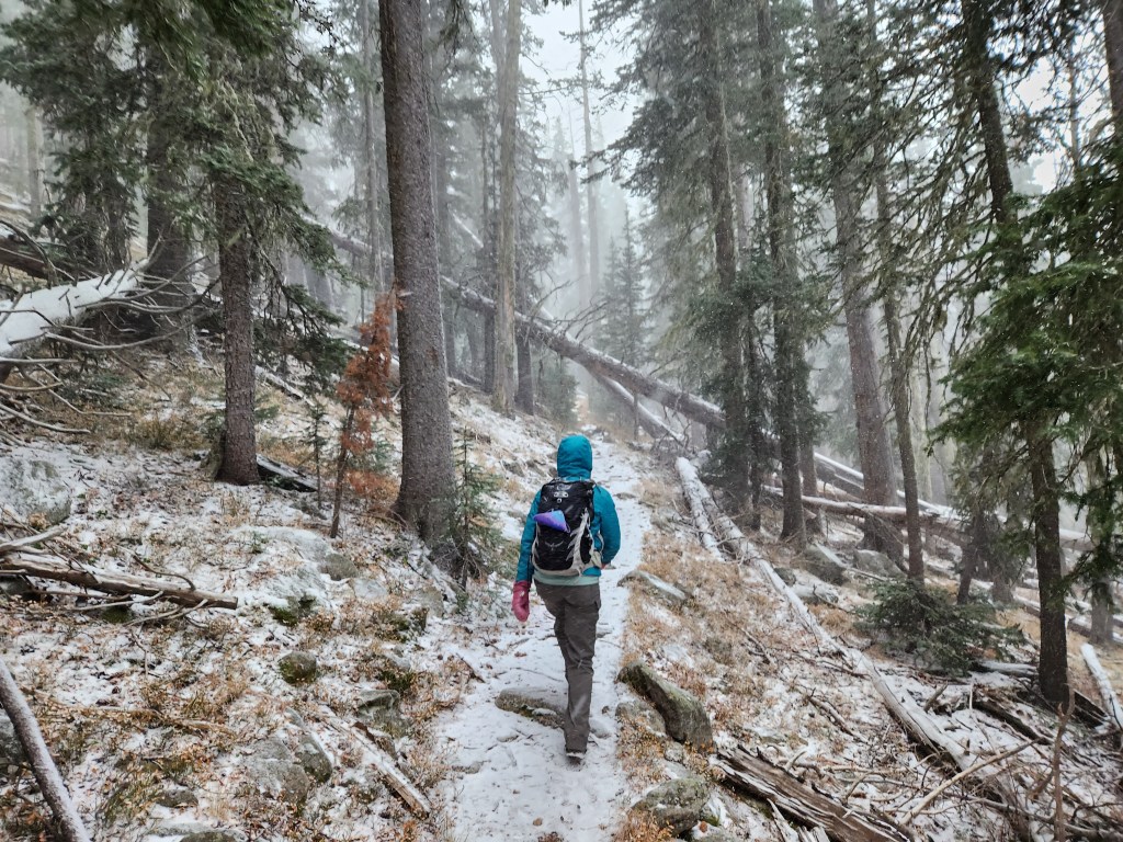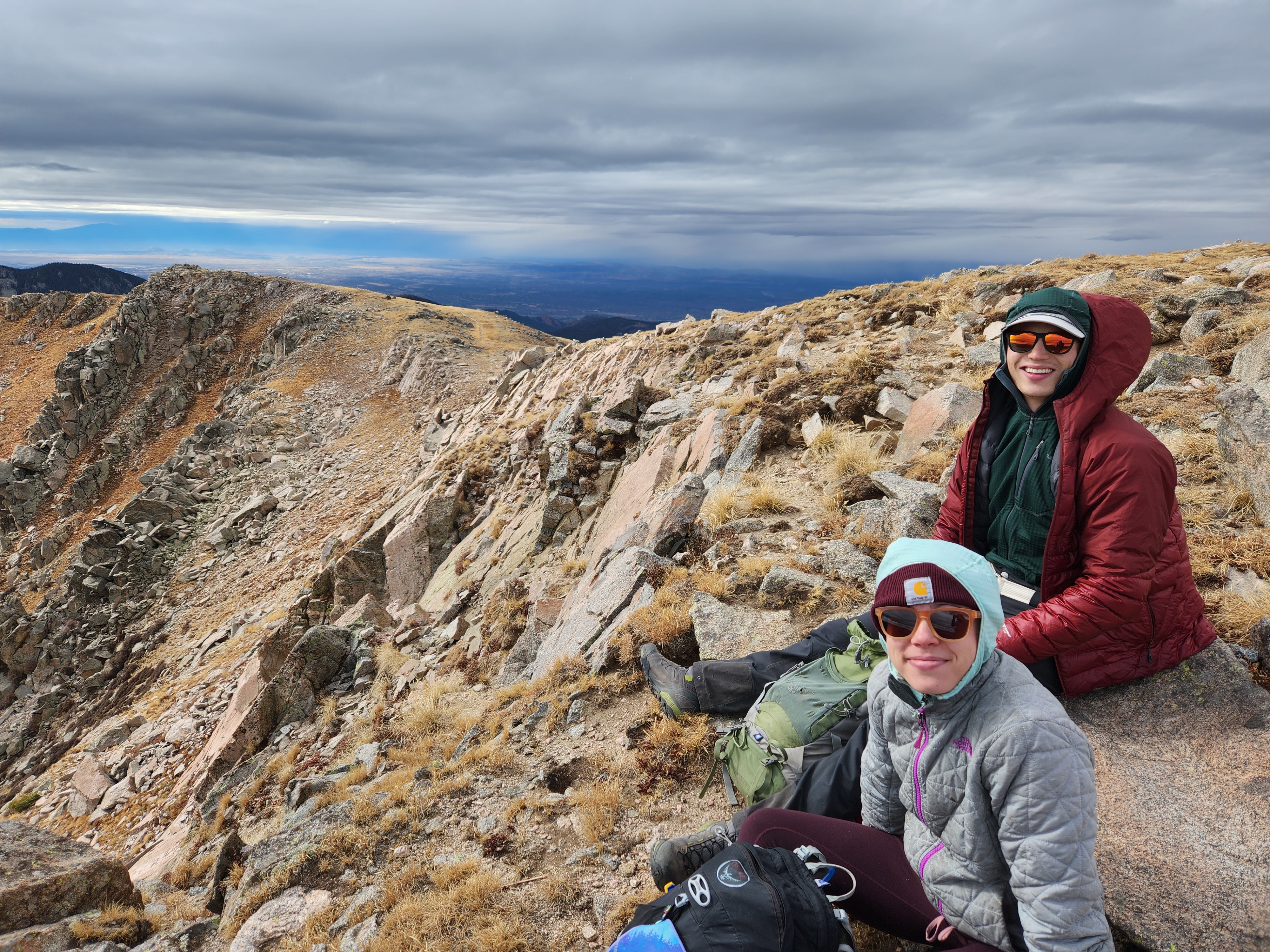 Atop Santa Fe Baldy, we could see the incoming storm. Rather than retreating on the easy trail down, we hiked over the neighboring peaks back to the ski basin as snow started to fall. It was an epic day, braving the storm at 12,000 feet!