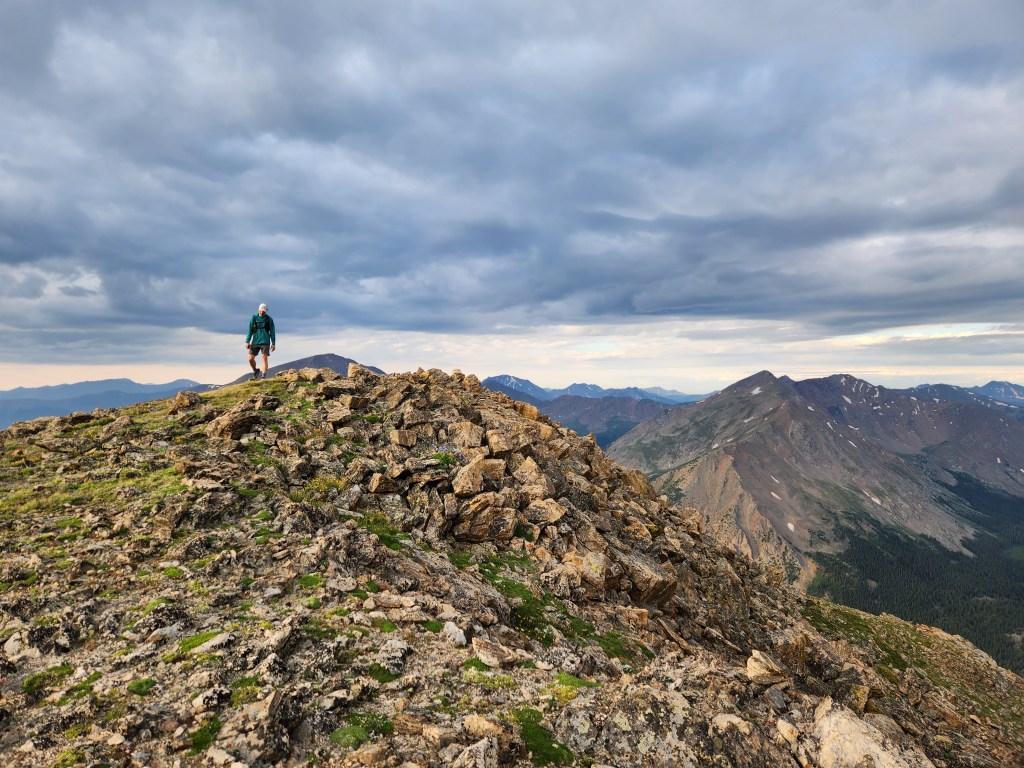 Ryan and I reached treeline an hour after setting off, then tackled the first steep climb up South Massive to 13,600′. A few sunbeams and swirling purple clouds made for some epic scenery. The stoke completely overwhelmed any fatigue. However, I hadn’t been spending much time at altitude this summer. I was feeling surprisingly gassed, especially when we tried to jog across the flatter saddles.
