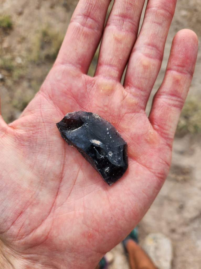 The view opened up to the west as we crested the end of a small ridge before arcing back towards Alamo Canyon. By mile 12 or so, I was still feeling pretty good. Tony and I tried to find a trail following the rim of Alamo Canyon, but alas it was yet another abandoned footpath in the New Mexico back country. In search for the trail, all I found was an obsidian scraper/blade. We turned back to continue on a well worn trail back towards the car.