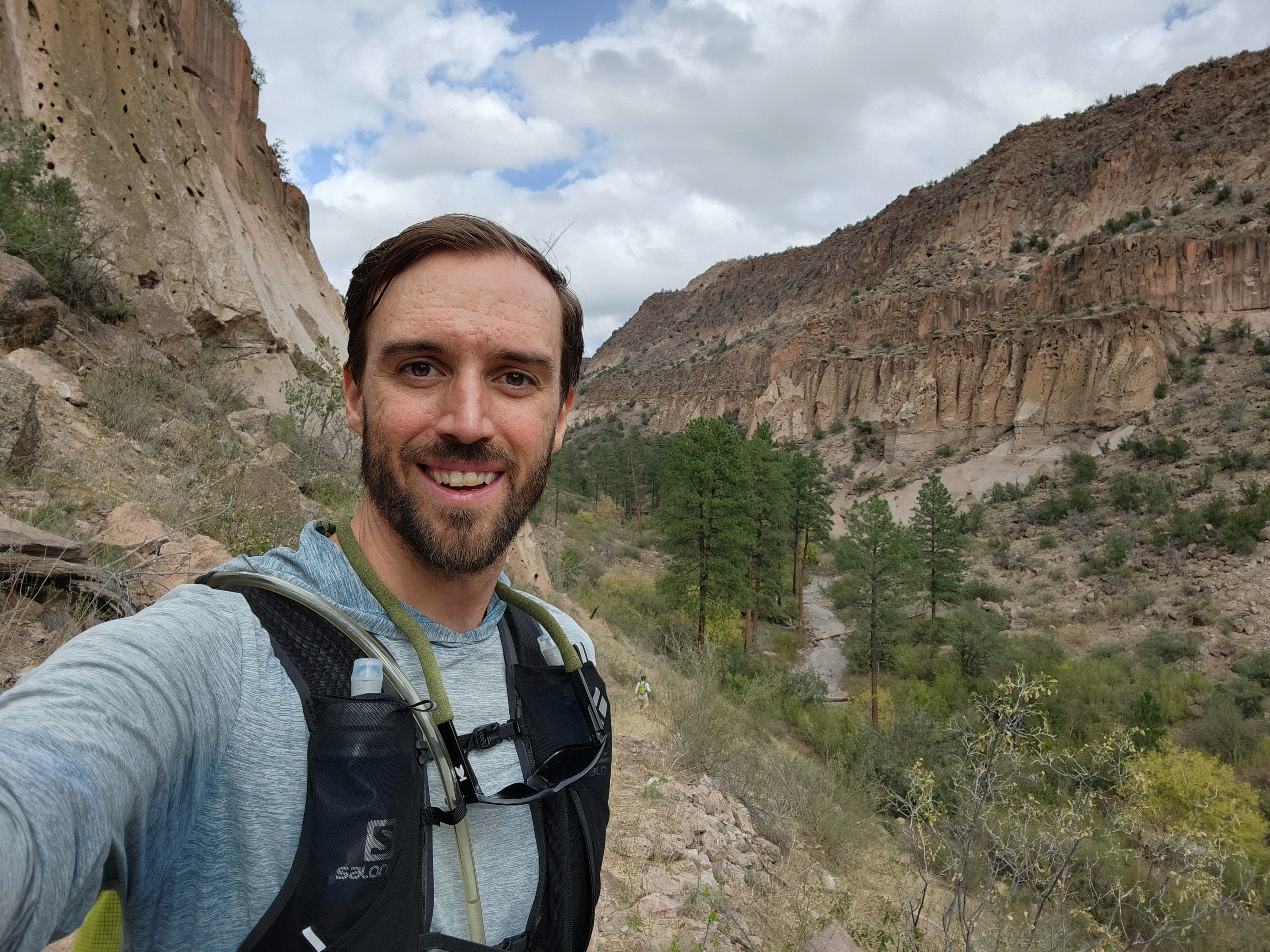 Maggie was recovering from her ACL surgery six weeks earlier. She was finally able to walk around a bit without crutches. After being mostly couch bound since the surgery, Maggie’s cabin fever was running quite high, so we decided to get out for a weekend of car camping at Bandelier National Monument. When we talked with Tony, he and I made a plan to go for a long trail run.