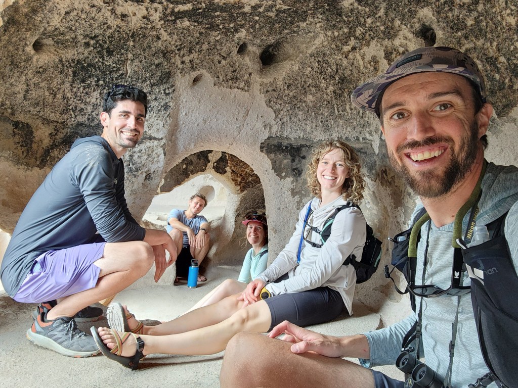 We split up. Tony continued on the mesa top and I went back down into the canyon. Grimy, sweaty, and wearing unusual clothing, I walked between crowds of tourists also here to visit the cliff dwellings. I claimed a picnic table and before long Maggie, and our friends, Will and Mackenzie, showed up with a cooler full of food and drinks. My saviors!