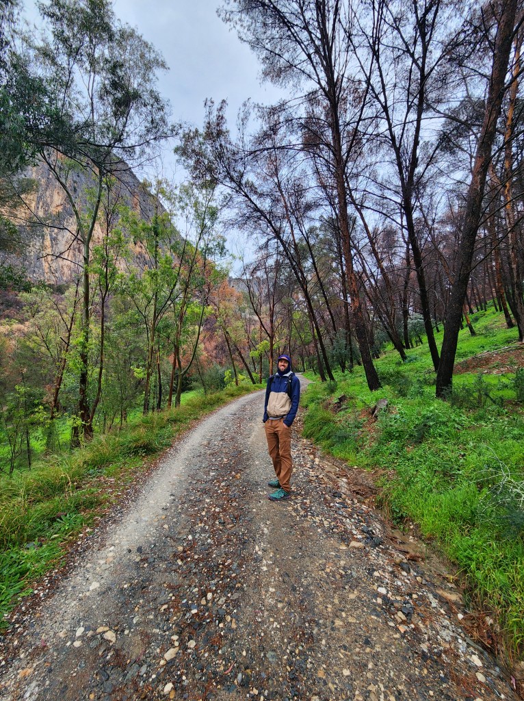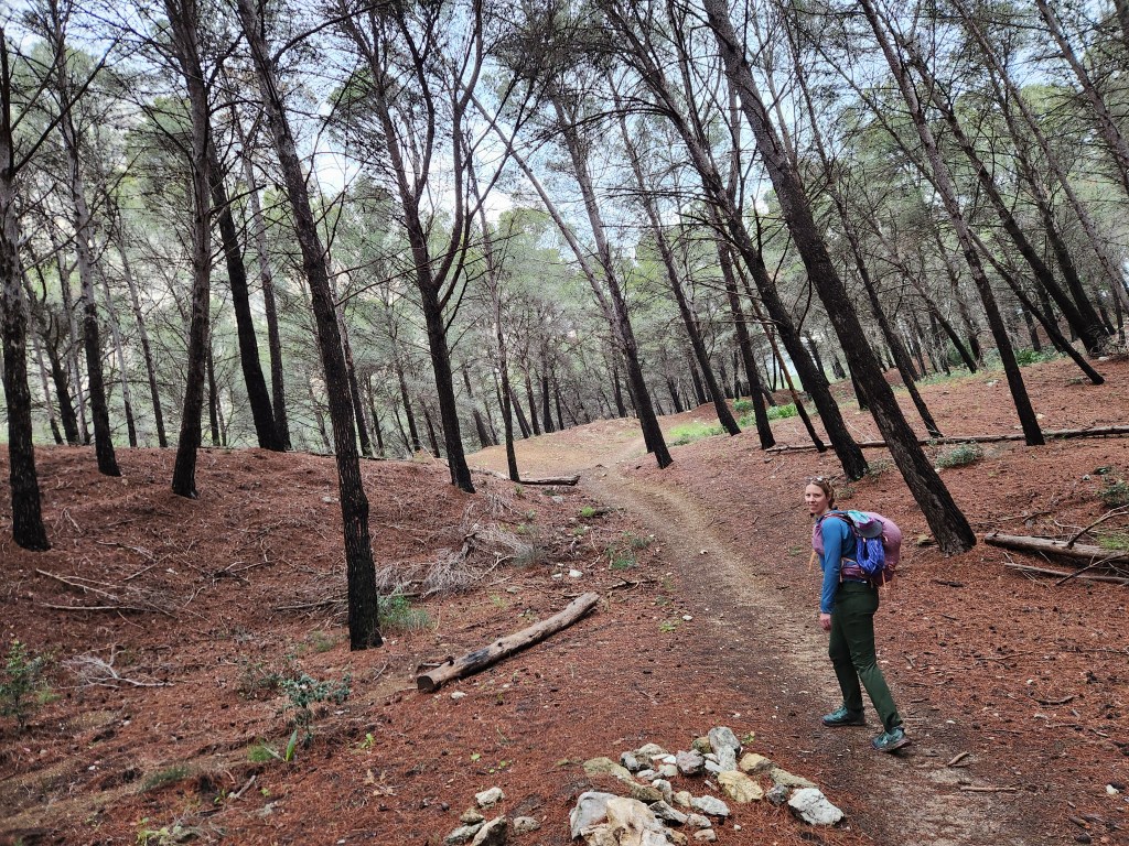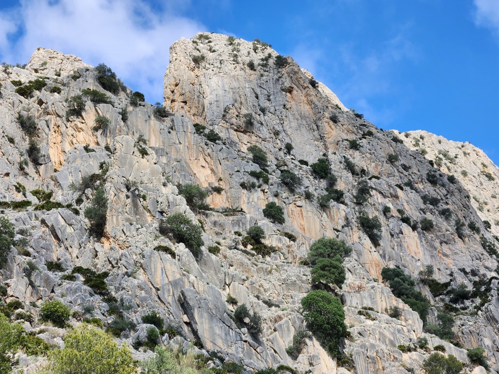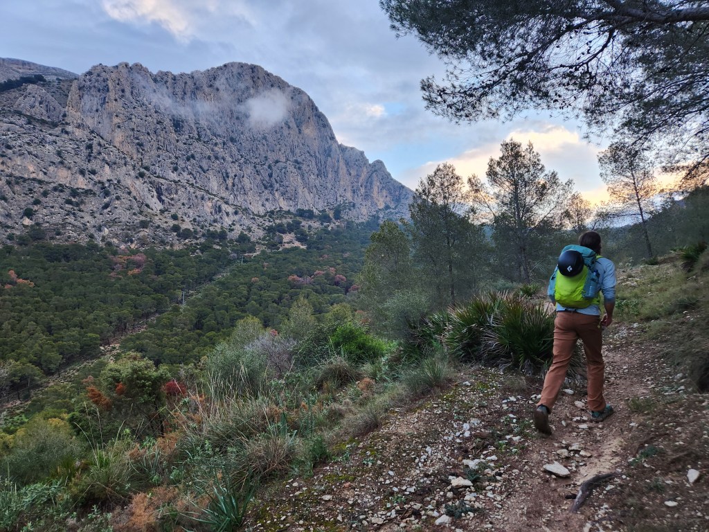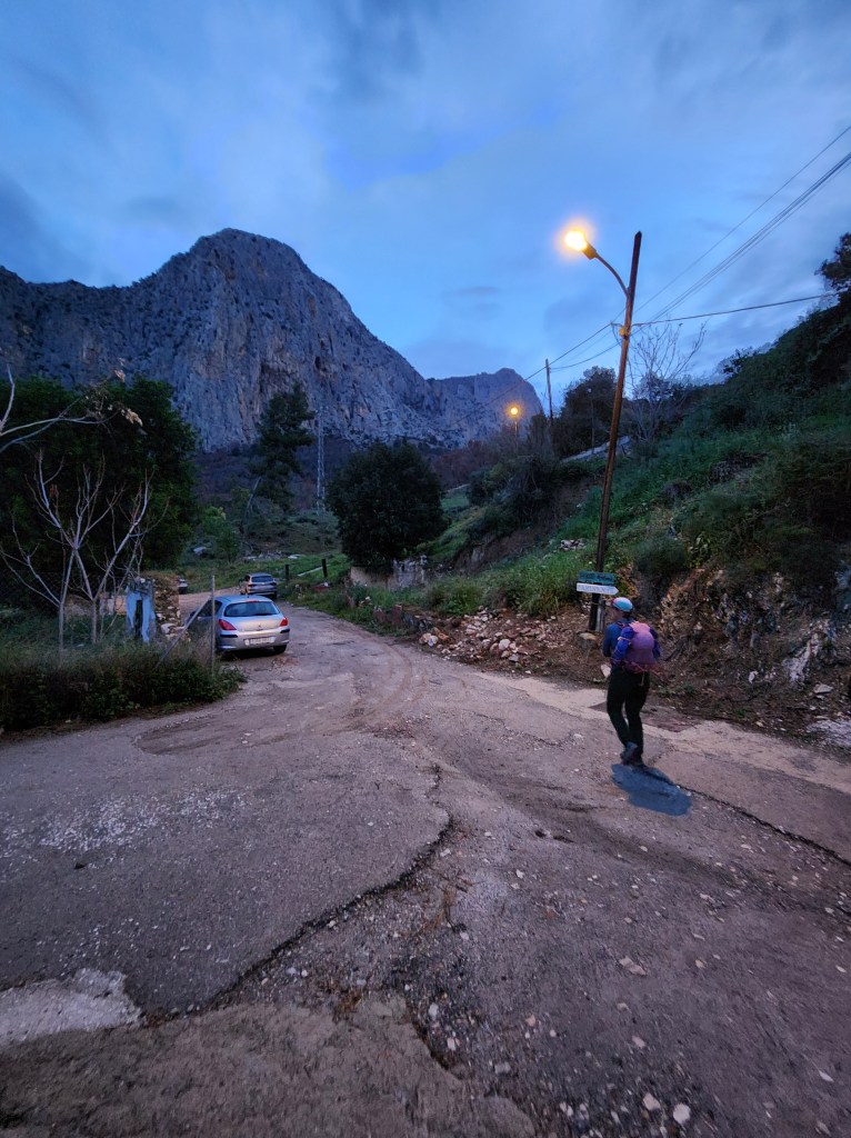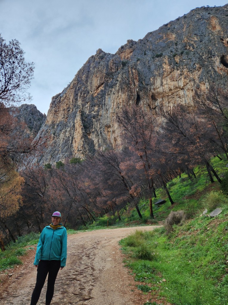 It was cool and misty as we hiked up the valley on a dirt (mud?) road. Between the trees, we caught a glimpse of the towering cliffs that put El Chorro on the map as a climbing destination.