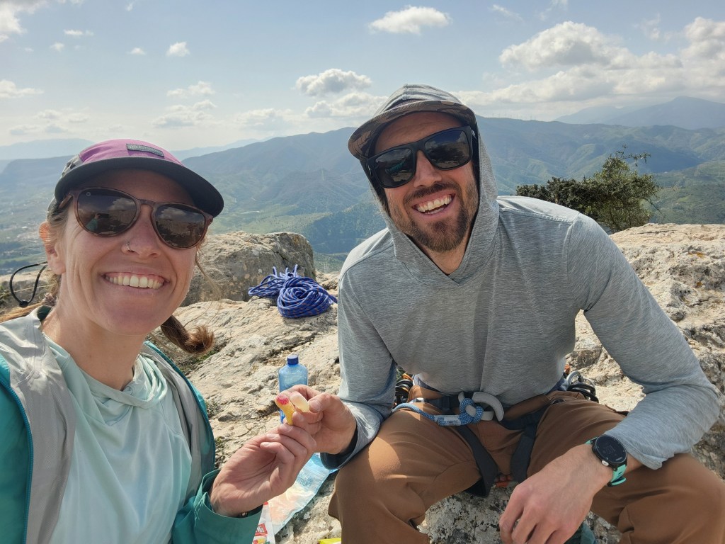 “Do you know how to say ‘summit’ in Spanish ?,” I asked. Maggie responded, “Umm… La CUMBRE!” I shouted it into the valley, hoping some other climbers might hear us. Maggie and I enjoyed a summit lunch with beautiful weather. Our favorite snack was the sour gummies we had picked up in Madrid, shaped like feet and toes.