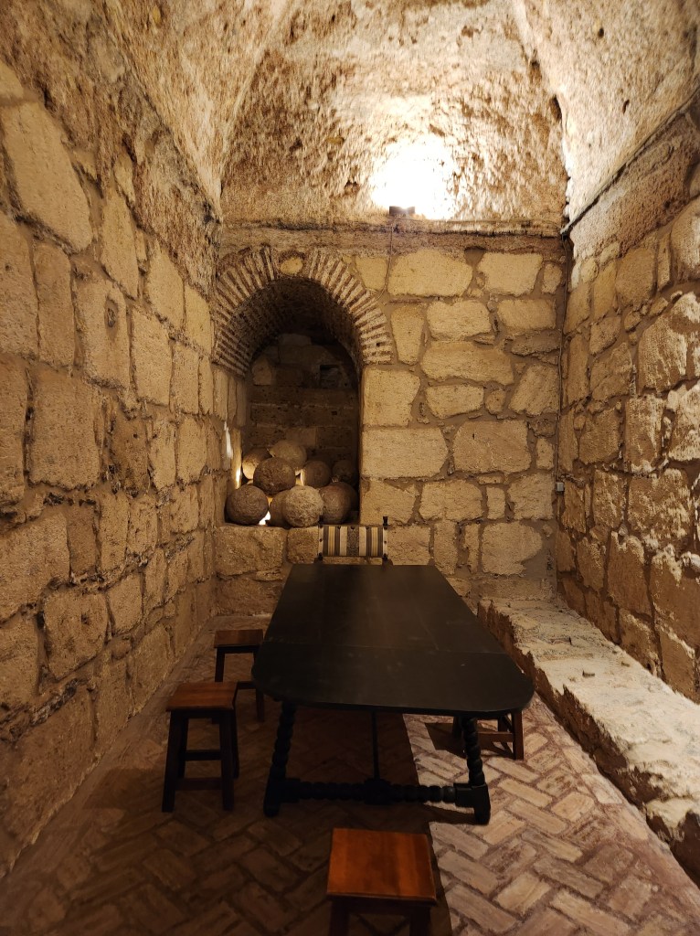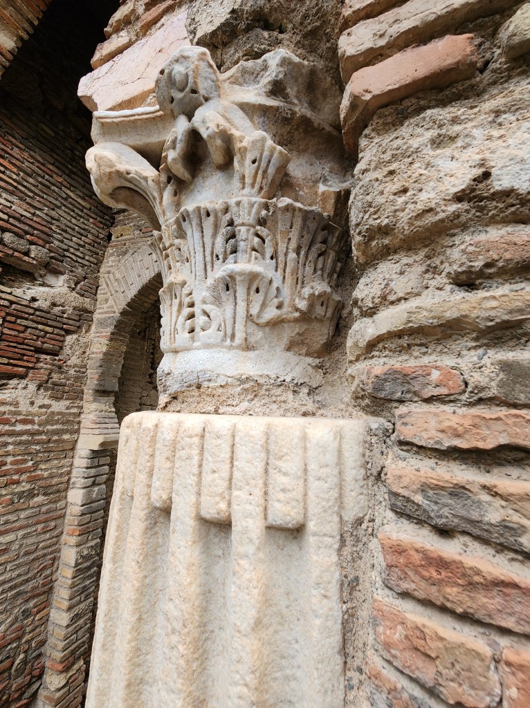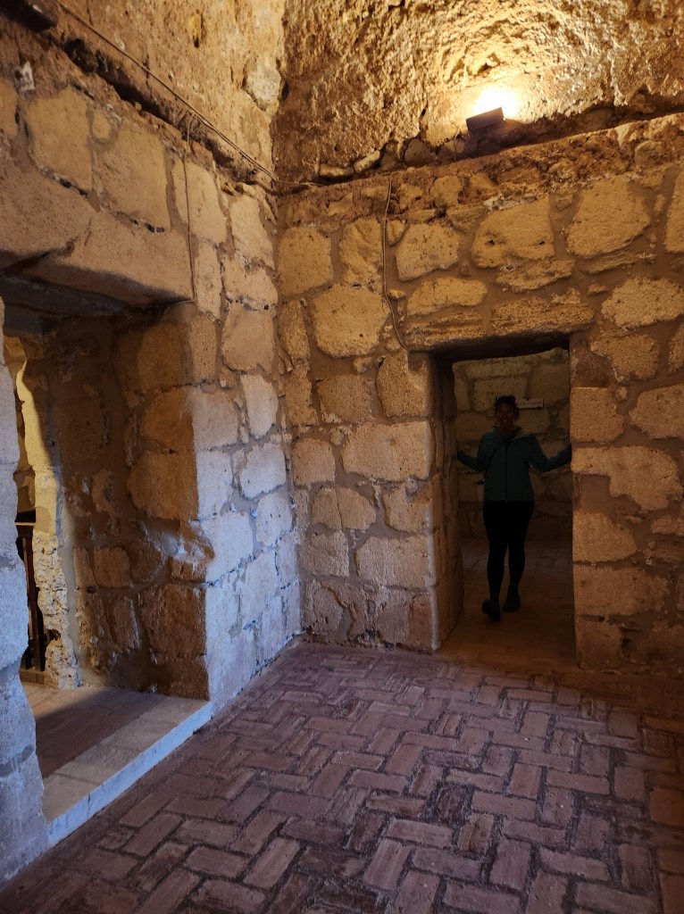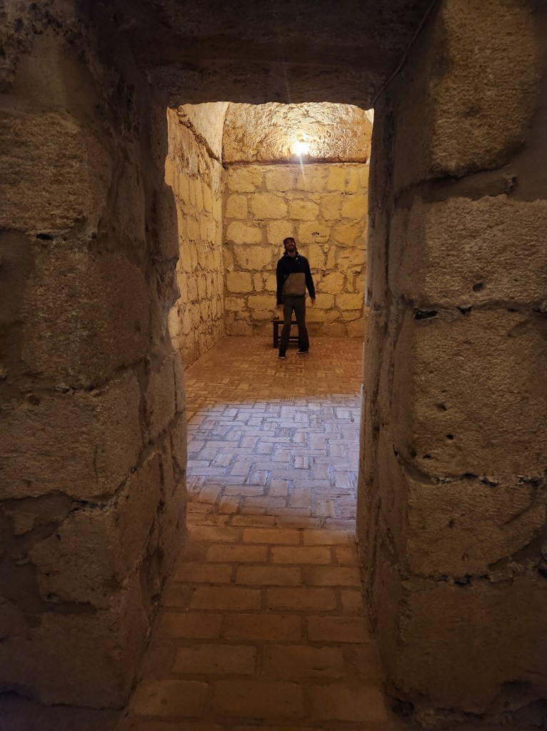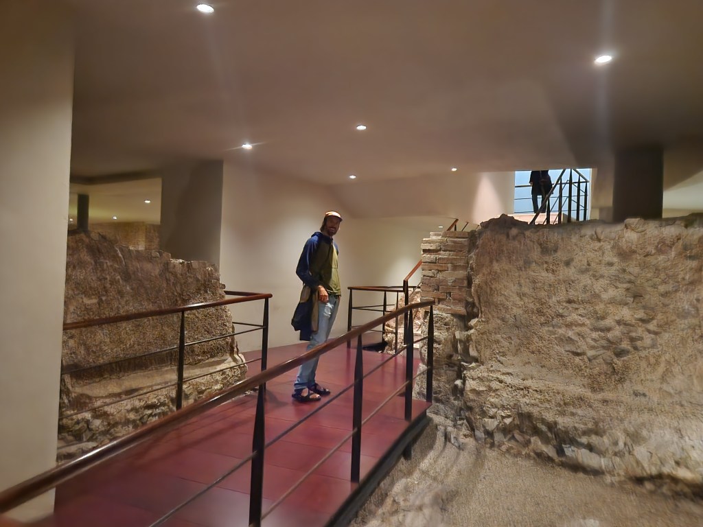 Wandering the halls, Maggie and I spotted a door with a small sign saying something like “Archeology Area”. Curiosity got the better of us, and we went down the stairs into the dim, musty basement. Sure enough, there were Roman and Phoenician structures underneath the museum. Amongst the walls was an amphora sticking out, mostly intact. This was a pleasant surprise to stumble upon!